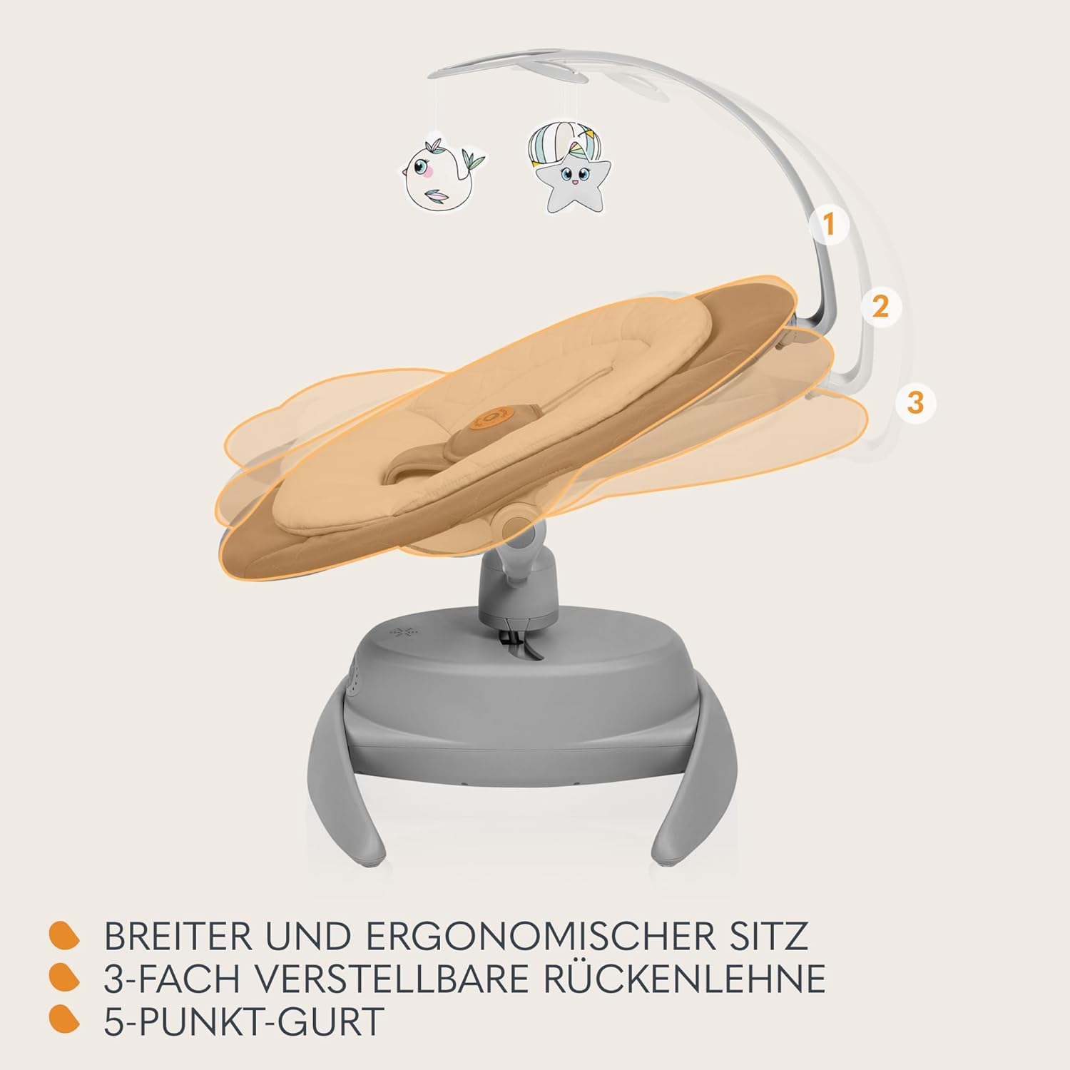 • MULTIDIREKTIONALES SCHAUKELSYSTEM: die Babywippe verfügt über 3 einzigartige Schaukelbewegungen. Die Fähigkeit, die Richtung zu ändern, ahmt den natürlichen Wiegerhythmus der Eltern nach. Ein automatischer Bewegungsmelder aktiviert den Schaukel- und