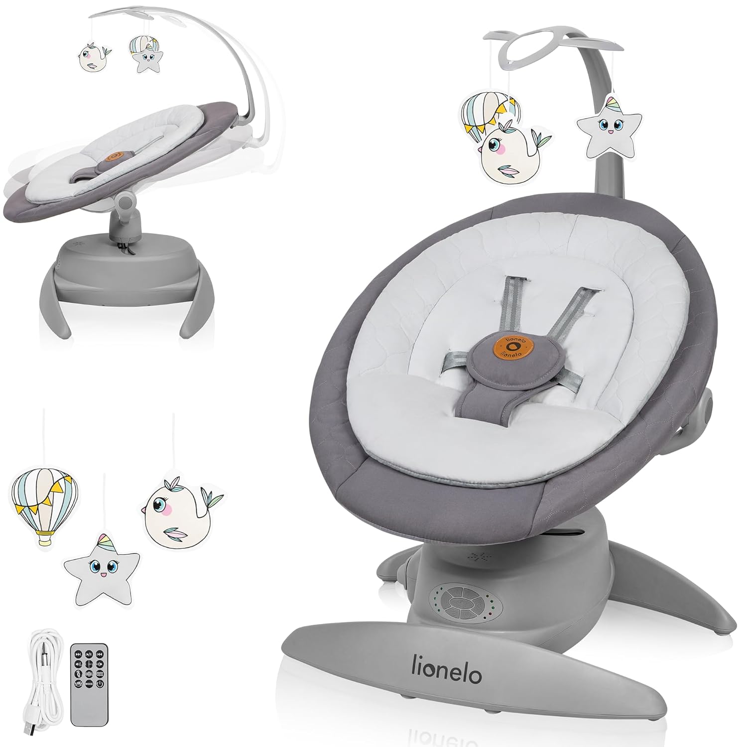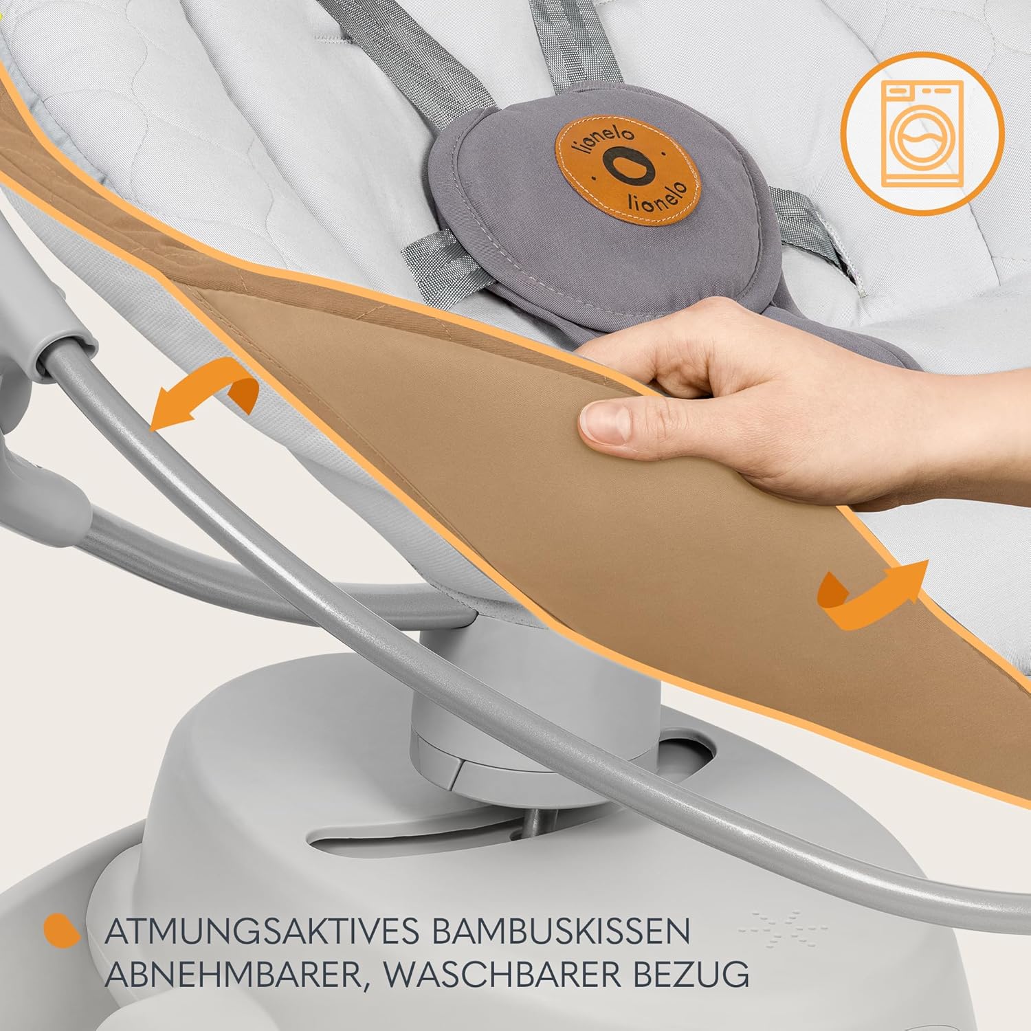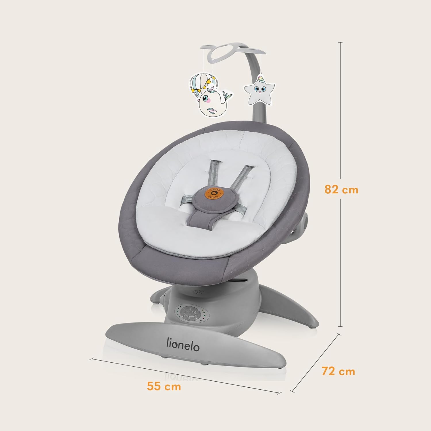 LIONELO MELL Elektrische Babywippe mit 360o Drehung für Babys bis 9 kg Verstellbare Rückenlehne 5 Sc