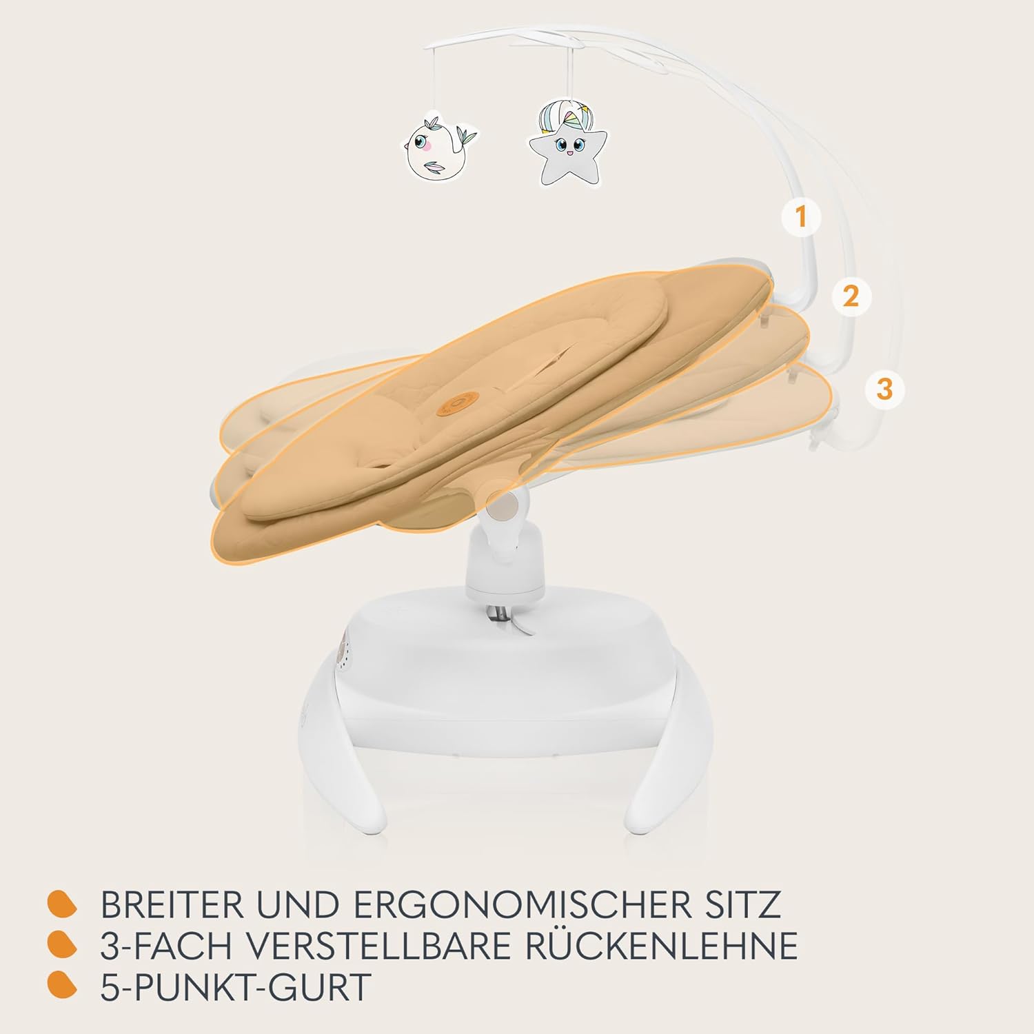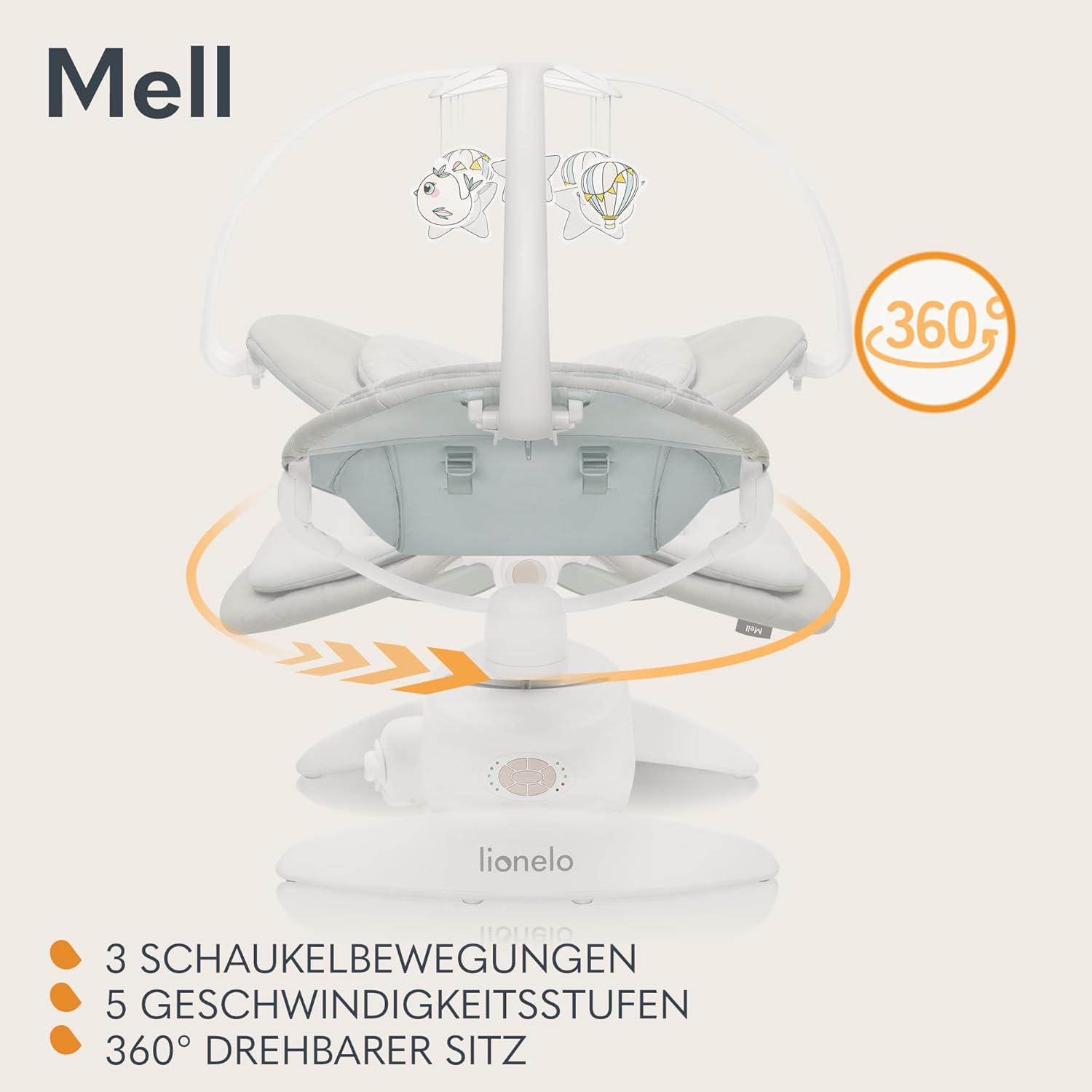 LIONELO MELL Elektrische Babywippe mit 360o Drehung für Babys bis 9 kg Verstellbare Rückenlehne 5 Sc