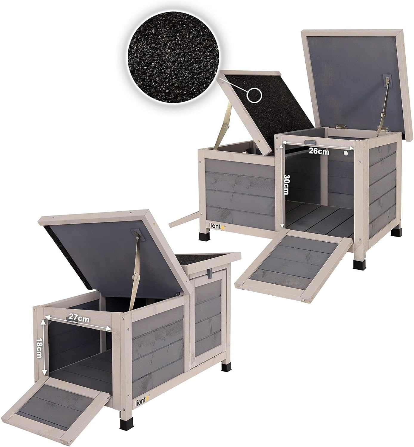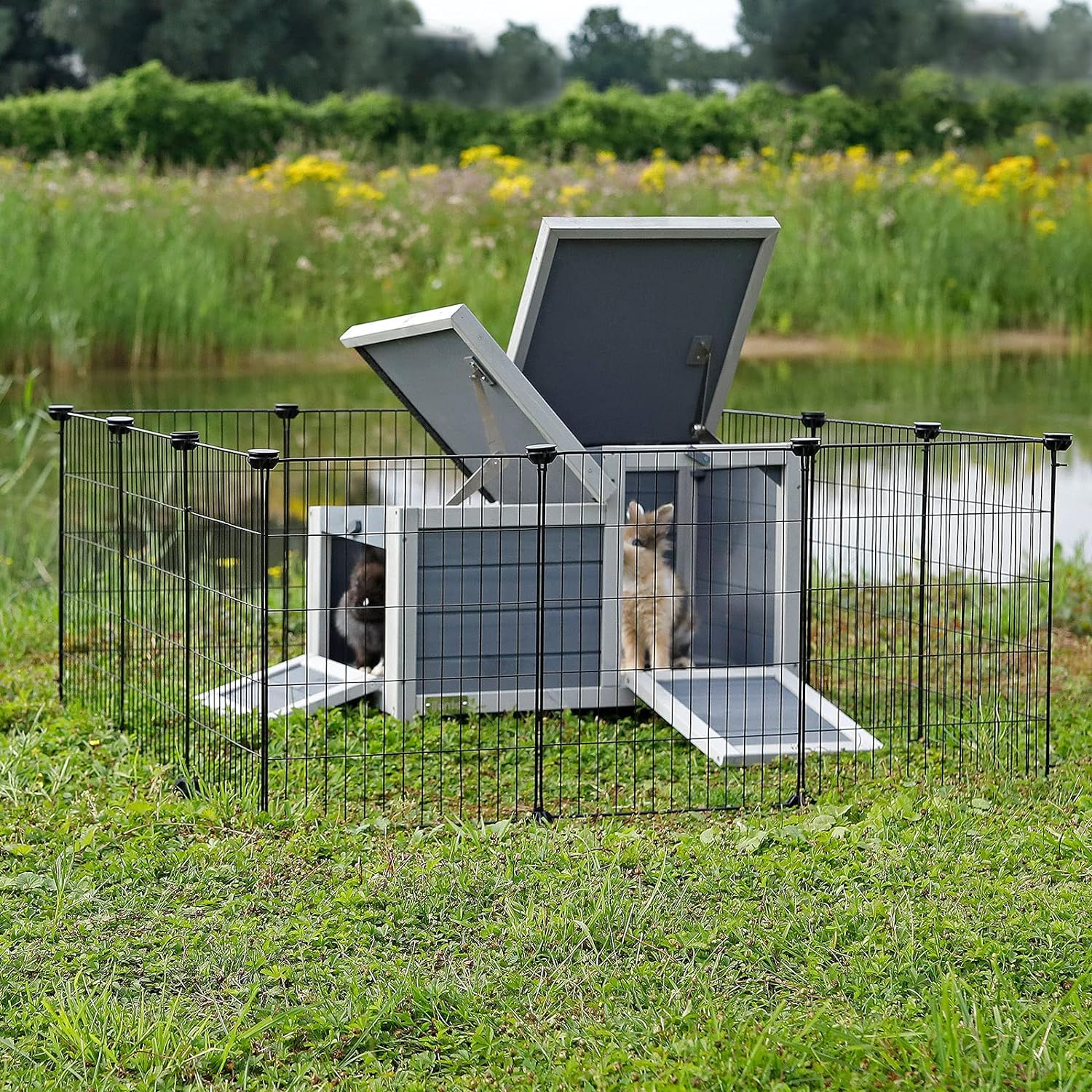 - WETTERFEST. Die beiden wasserfesten Dächer mit Bitumenbelag sorgen für trockene Aufenthalte. Sie sind aufklappbar und ermöglichen somit einen schnelleren Zugang zu Ihrem Tier und erleichtern die Reinigung des Kaninchenstalls