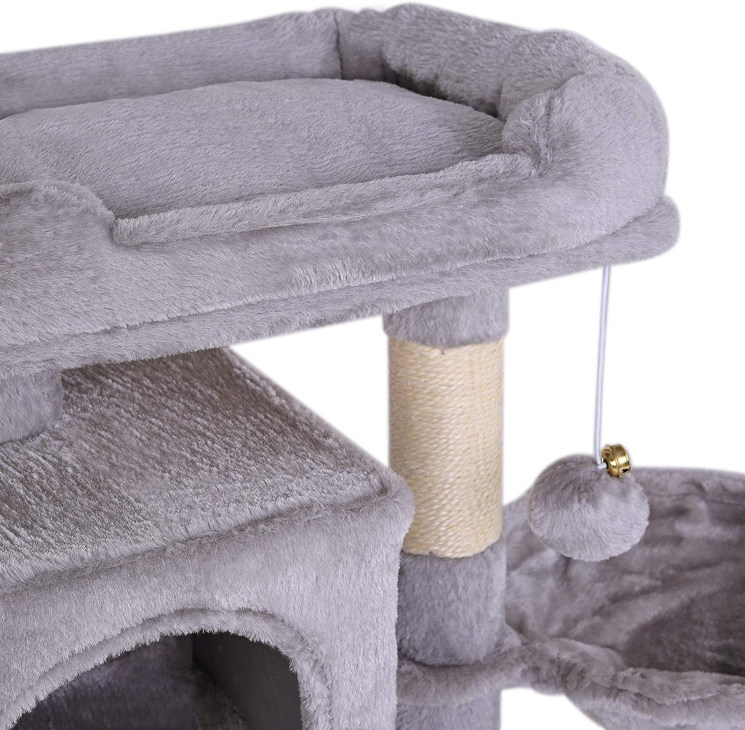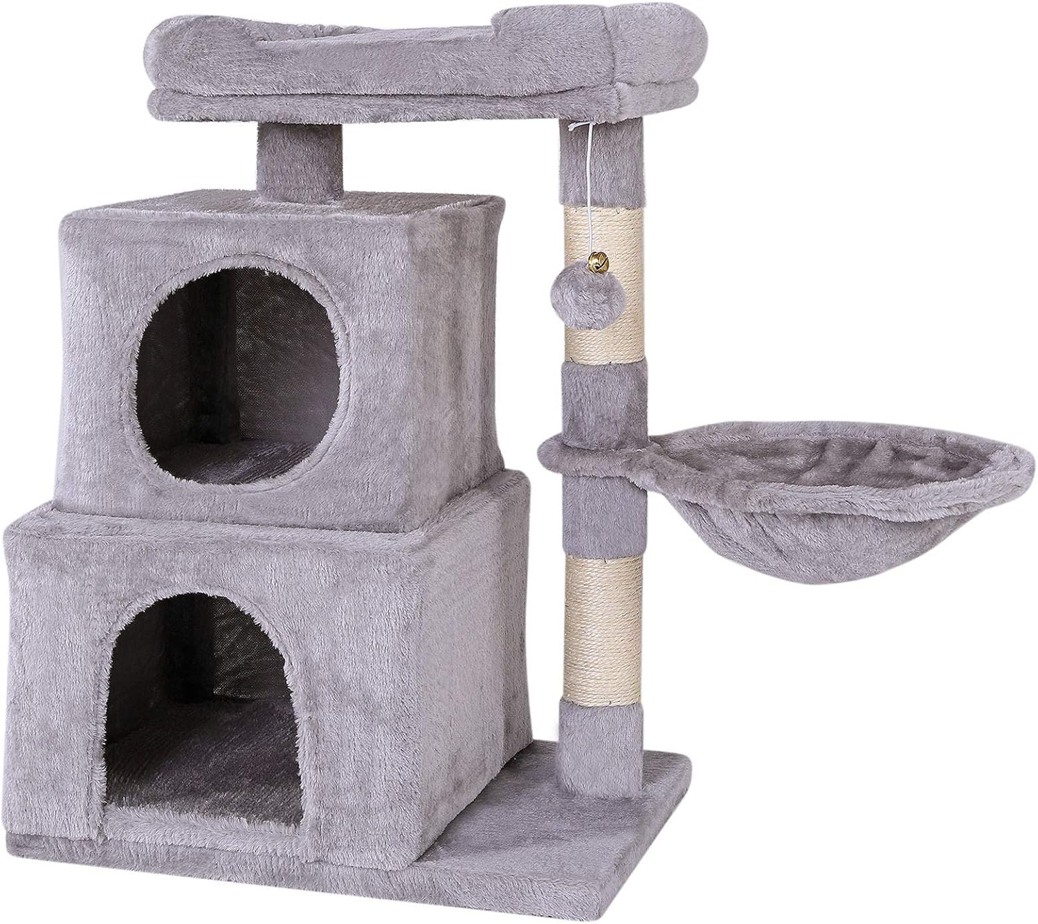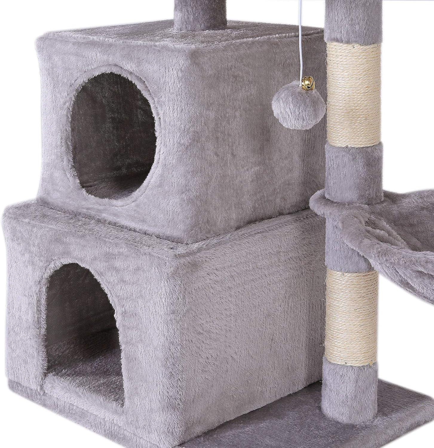 - IDEALES SPIEL- UND RUHEPARADIES. Die vortreffliche Ausstattung dieses Katzenbaumes mit 2 Höhlen und einem Plüschball mit Glöckchen befriedigt den Spieltrieb Ihrer Katze. Das gemütliche Liegebett und die Liegemulde unterstützen zusätzlich die