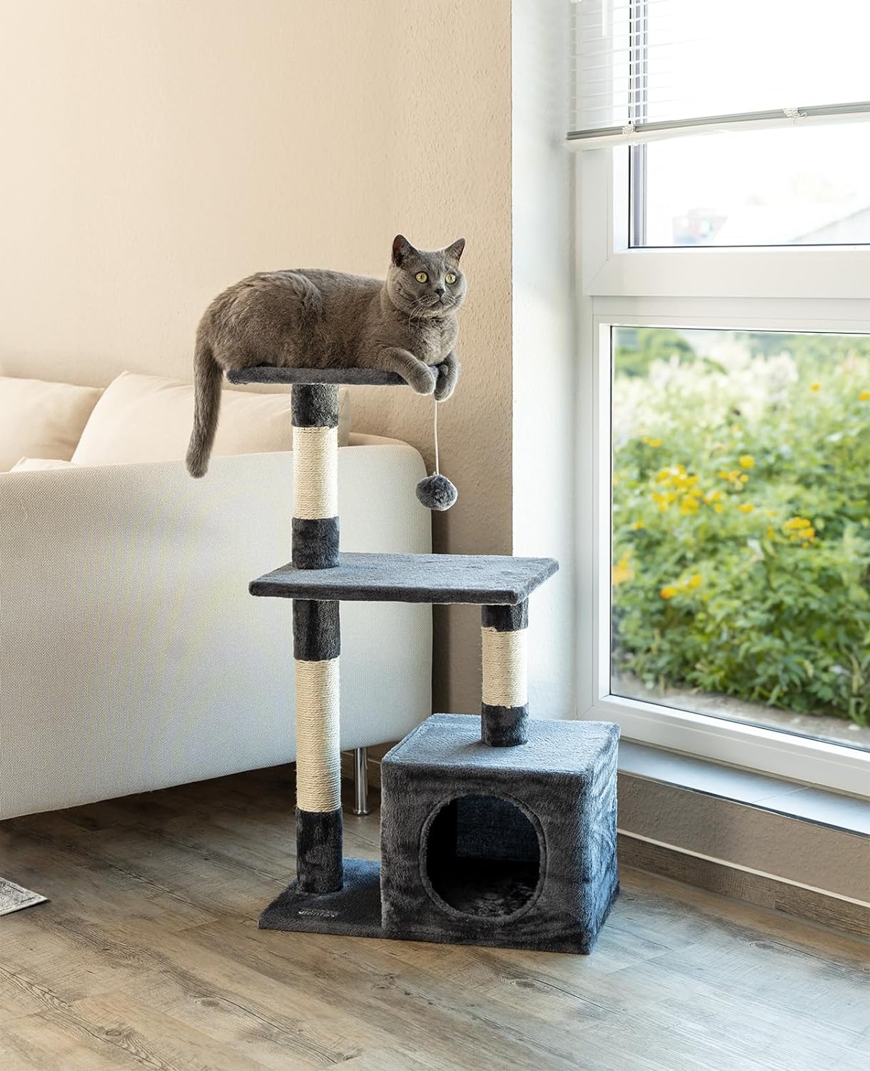 - SPIEL- UND RUHEPARADIES. Dieser Katzenbaum mit einem Plüschspielball befriedigt den Spiel- und Jagdtrieb Ihrer Katze. Eine Höhle und zwei Plateaus laden zu Ruhephasen ein und auch das beliebte Beobachten kommt nicht zu kurz