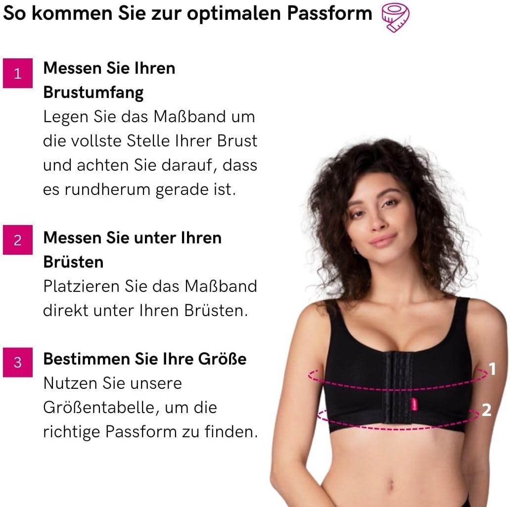 • Nahtloser Kompressions-BH nach Operationen für alle Arten von Brustoperationen wie Augmentation, Reduktion, Mammoplastie, Brustrekonstruktion oder Mastopexie und Mastektomie.
