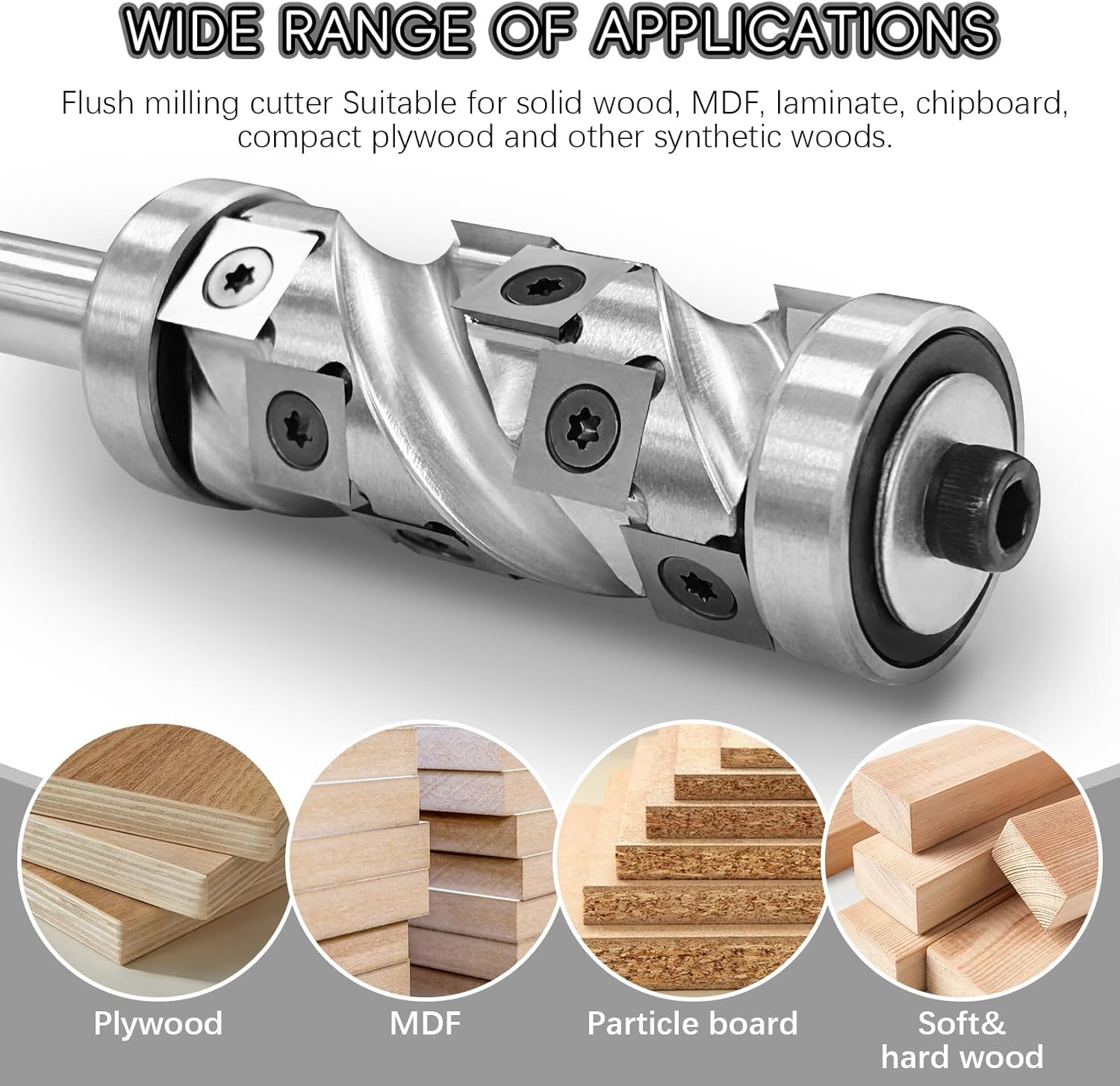 - BREITES EINSATZSPEKTRUM: Bündigfräser Geeignet für Massivholz, MDF, Laminat, Spanplatten, Kompaktsperrholz und Andere Synthetische Hölzer.(Vermeiden Sie das Schneiden von Metall- und Nichtholzmaterialien)