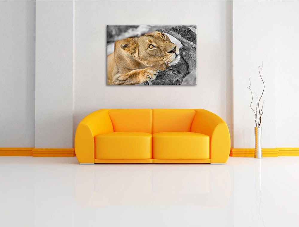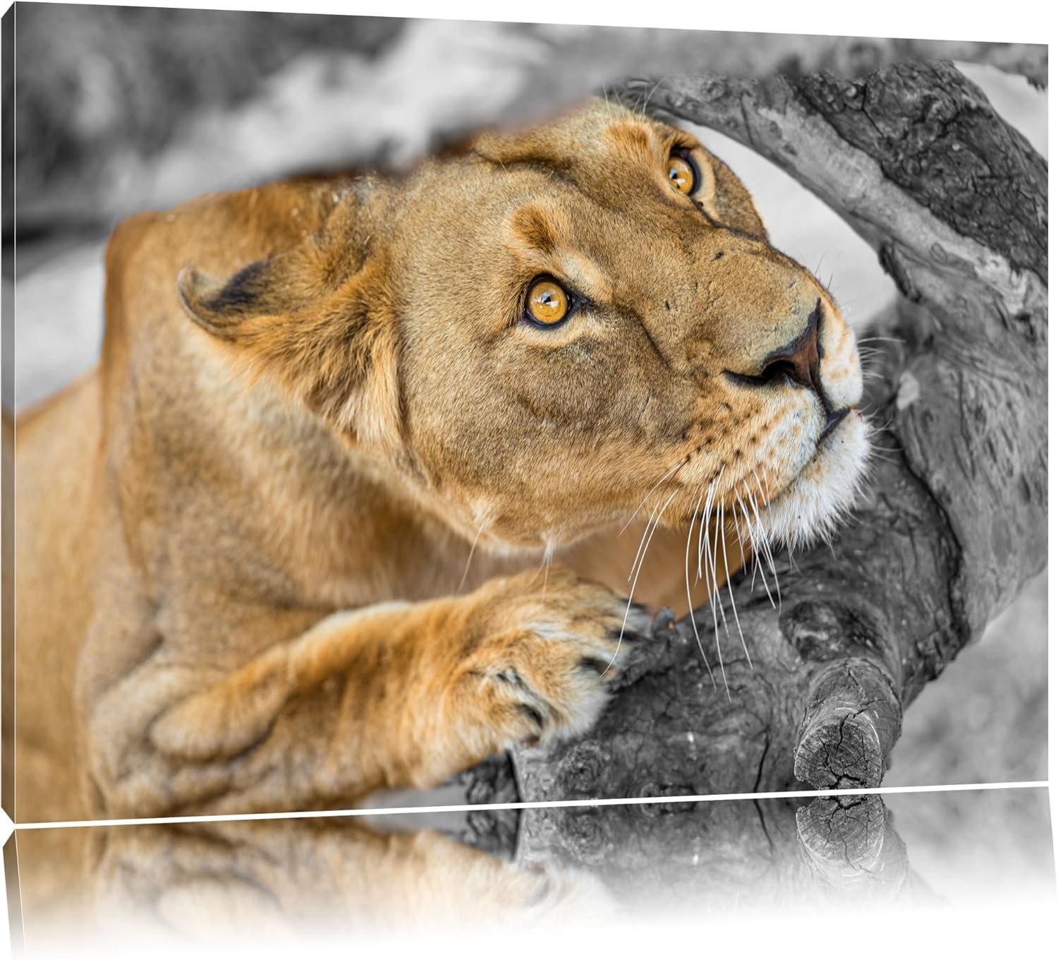 listige Löwin schwarz/weiss Format: 100x70auf Leinwand, XXL riesige Bilder fertig gerahmt mit Keilra
