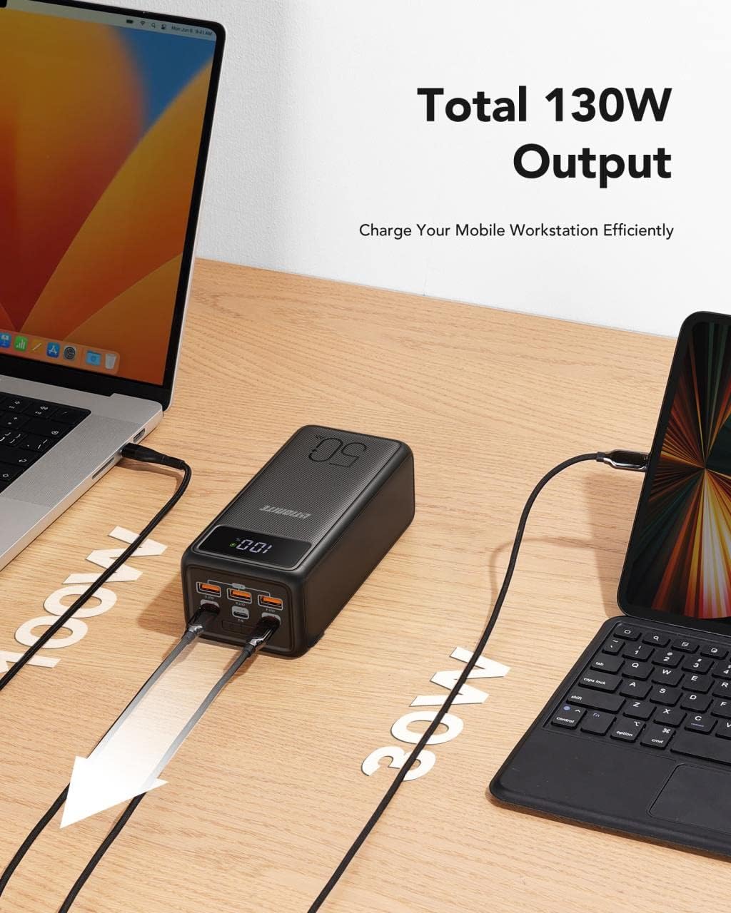 - SCHNELLES AUFLADEN | Die Powerbank kann mit dem 65W-PD-Wandladegerät (im Lieferumfang enthalten) in nur 3.5 Stunden vollständig aufgeladen werden. Darüber hinaus kann die Powerbank auch über das original USB-C PD-Netzteil Ihres Computers, Smartphones