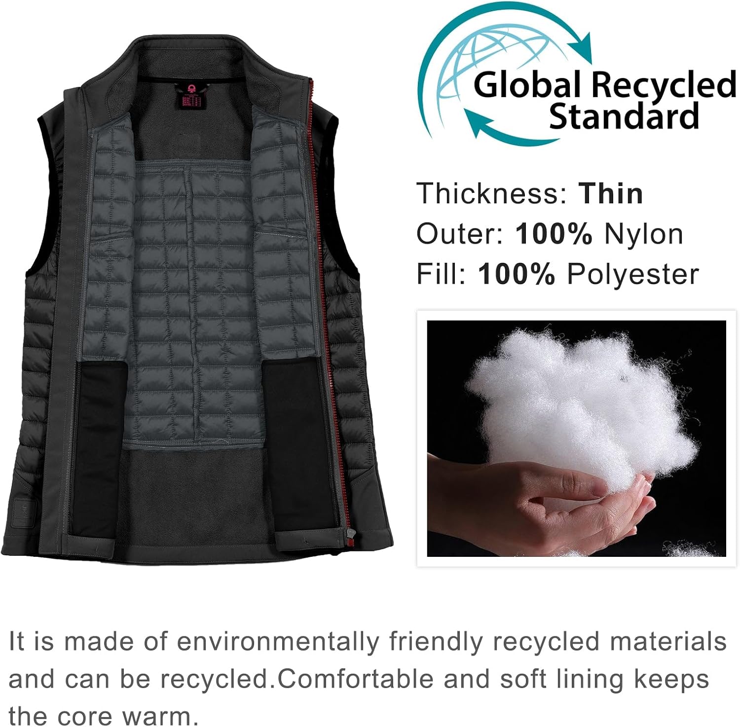 - UMWELTFREUNDLICH-Sportweste ist gefüllt mit 100 % recyceltem Polyester, minimale Umweltbelastung.
