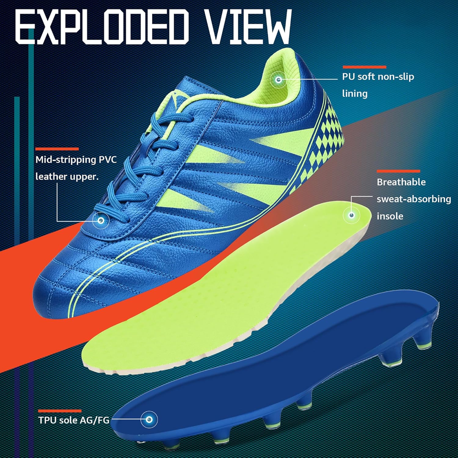 - ASHION Jungen Fussballschuhe:Das Obermaterial besteht aus hochwertigem PVC-Leder mit den Eigenschaften Weichheit, Leichtigkeit und Wasserbeständigkeit, das eine gute Kontrolle und ein gutes Gefühl für den Fussball bietet.