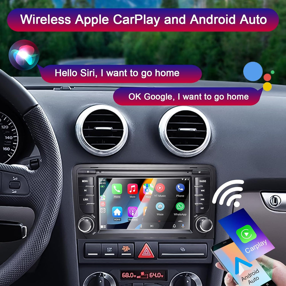 - 🚘【Neuestes Aktualisiertes System】Audi a3 8p radio Geniessen Sie den Komfort von kabellosem Apple CarPlay und Android Auto – keine USB-Kabel erforderlich. Das System stellt automatisch eine Verbindung her, wenn Sie ins Auto einsteigen, und trennt