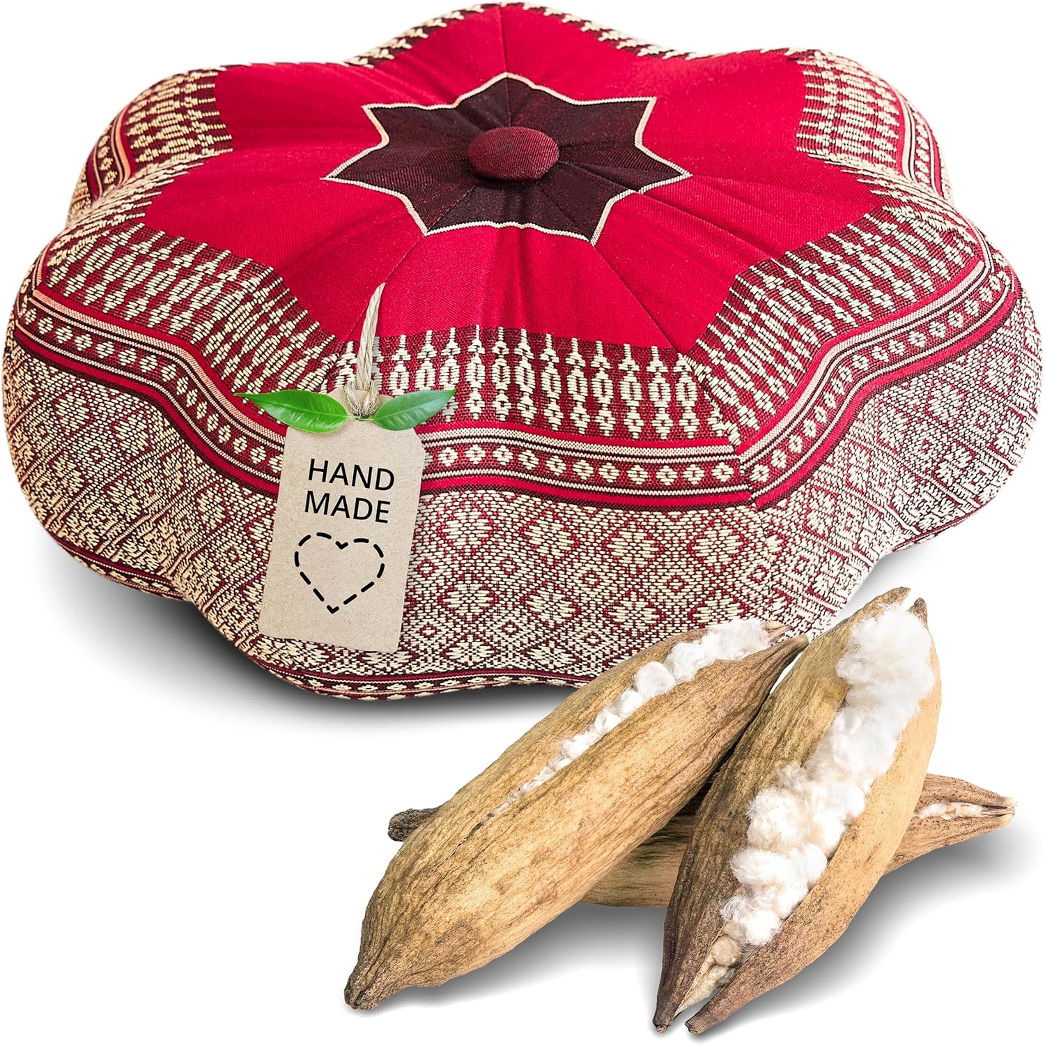 - PRAKTISCH UND VIELSEITIG: Das formfeste Kissen bleibt auch bei langem Sitzen stabil. Der Knopf in der Mitte sorgt ebenfalls für hohen Sitzkomfort und eine gemütliche Sitzfläche. Kombiniert mit einer Klappmatratze oder Rollmatte aus Kapok, der