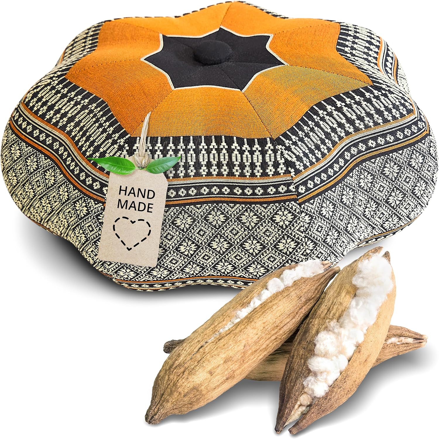 - PRAKTISCH UND VIELSEITIG: Das formfeste Kissen bleibt auch bei langem Sitzen stabil. Der Knopf in der Mitte sorgt ebenfalls für hohen Sitzkomfort und eine gemütliche Sitzfläche. Kombiniert mit einer Klappmatratze oder Rollmatte aus Kapok, der