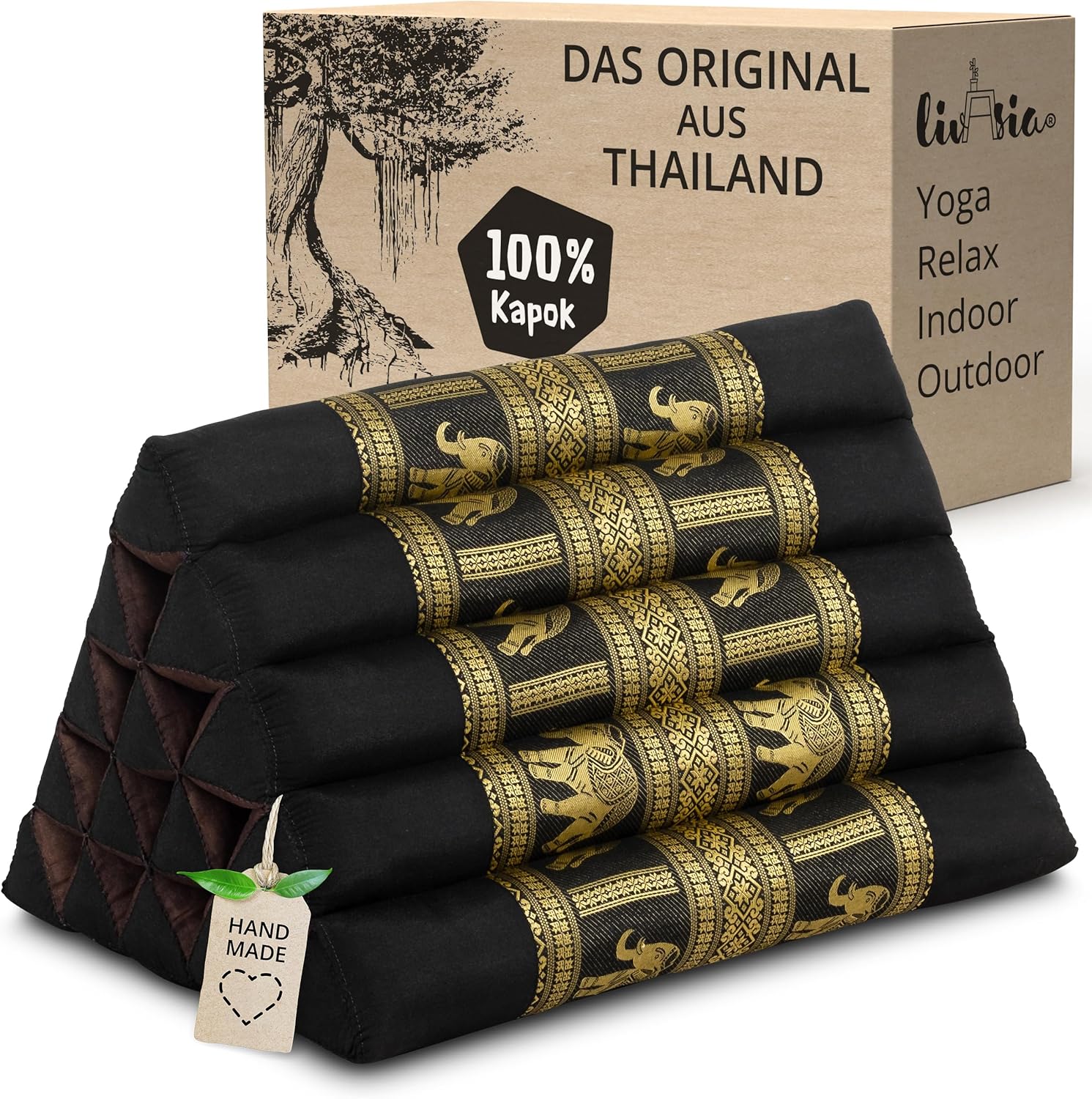 • PRAKTISCH UND VIELSEITIG: Das formfeste und stabile Kissen bietet eine zuverlässige Rückenstütze. Kombiniert mit einer Klappmatratze oder Rollmatte aus Kapok, der Pflanzen-Daune, bringst du thailändische Gemütlichkeit in dein Leben. Masse