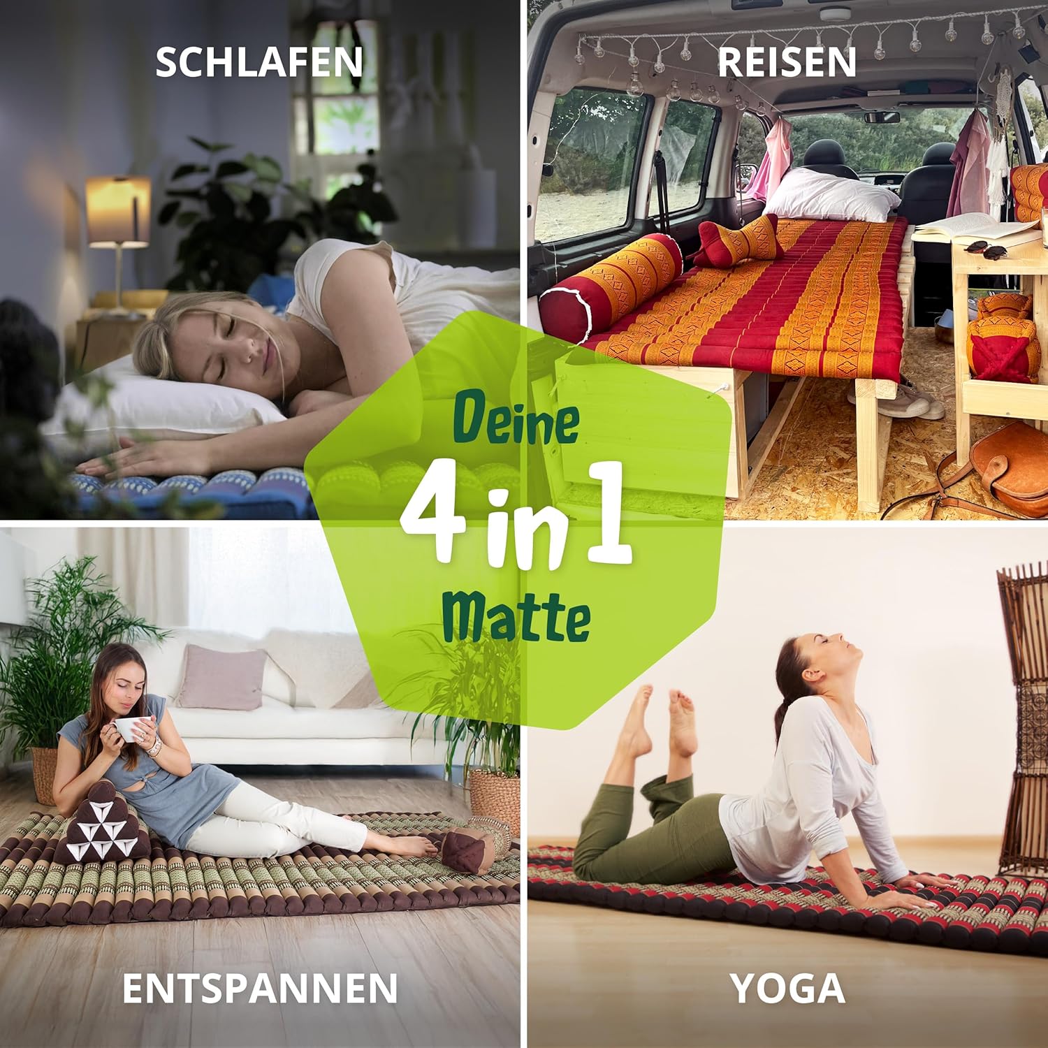 - PRAKTISCH UND VIELSEITIG: Die formfeste und stabile Matte bietet eine zuverlässige, langlebige und robuste Liegefläche. Kombiniert mit einem Dreieckskissen oder einer Nackenrolle aus Kapok, der Pflanzen-Daune, bringst du thailändische Gemütlichkeit