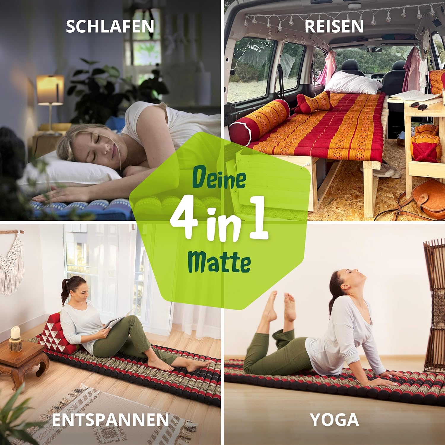 - ZUHAUSE ENTSPANNEN: Der vielseitige Begleiter liefert Entspannung und verknüpft dabei modernen Minimalismus und thailändisches Lebensgefühl. Die praktische, farbenfrohe Rollmatte lässt sich mit einem Handgriff ausrollen und dient als gemütliche