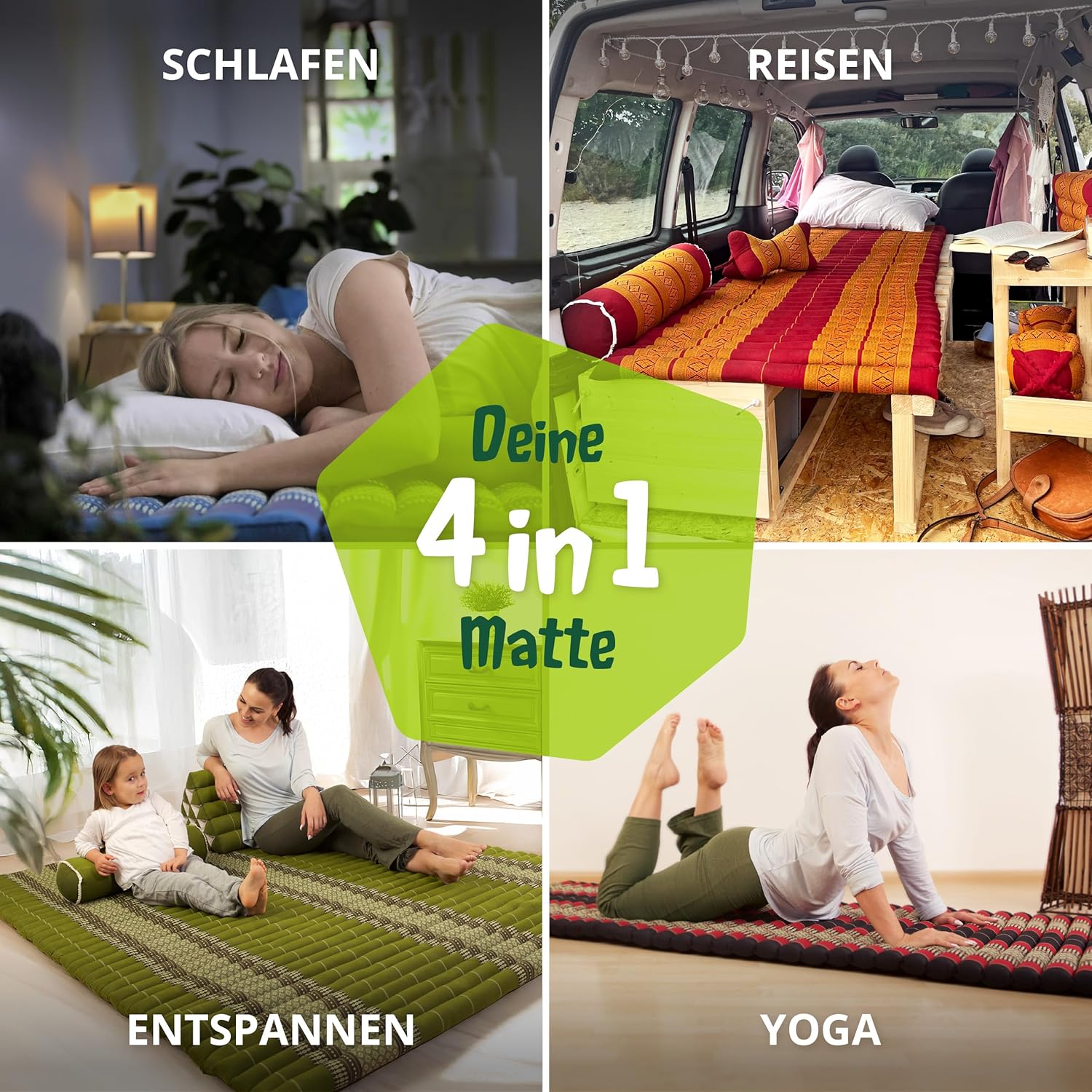 - PRAKTISCH UND VIELSEITIG: Die formfeste und stabile Matte bietet eine zuverlässige, langlebige und robuste Liegefläche. Kombiniert mit einem Dreieckskissen oder einer Nackenrolle aus Kapok, der Pflanzen-Daune, bringst du thailändische Gemütlichkeit