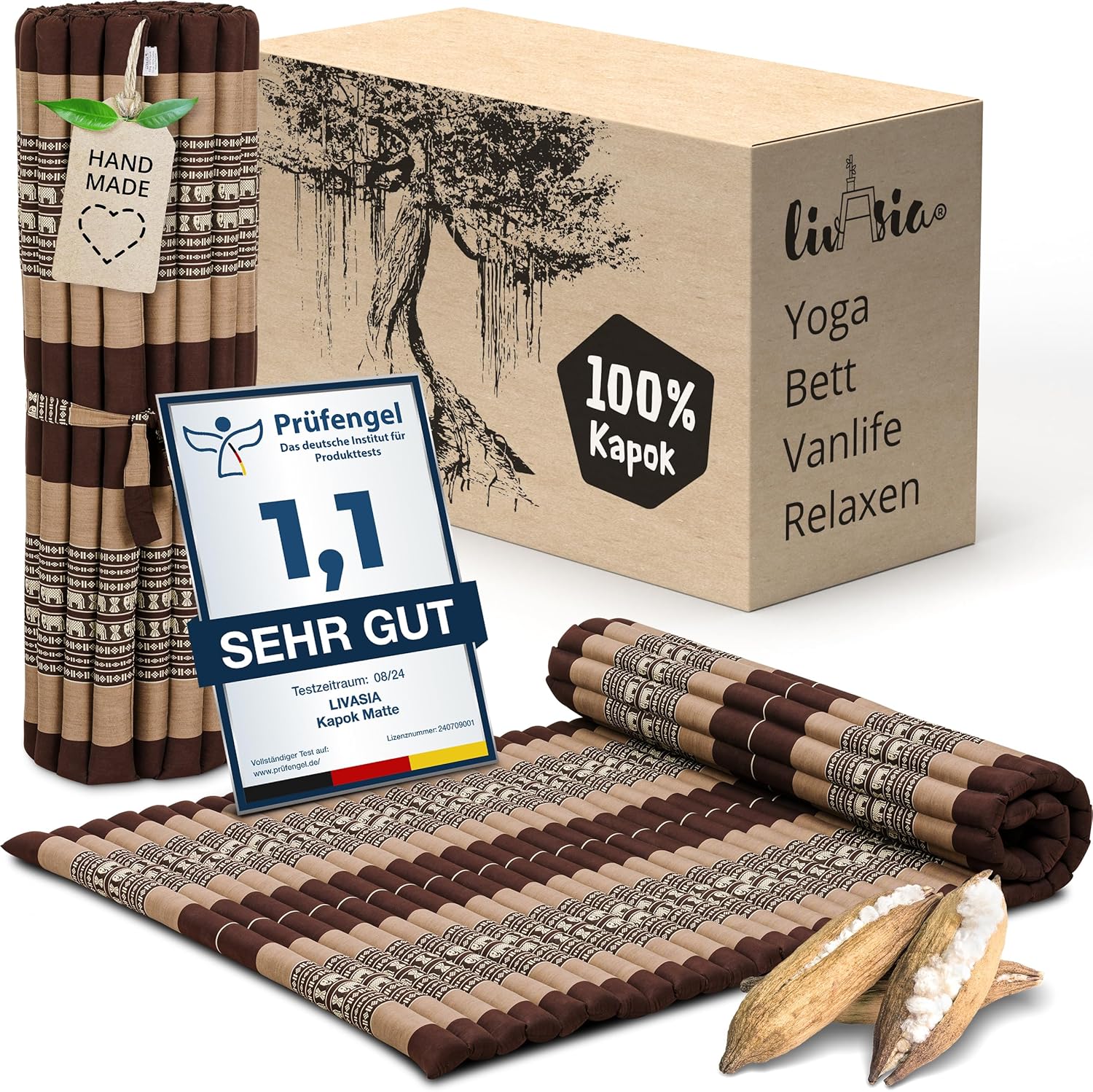 - QUALITÄT: 100 % Kapok, handverarbeitet und nachhaltig. Das gibt’s nur bei livasia: Natürlich entspannen mit Kapok. Eine Marke der Asia Wohnstudio GmbH. Geprüfte Qualität mit original Label.