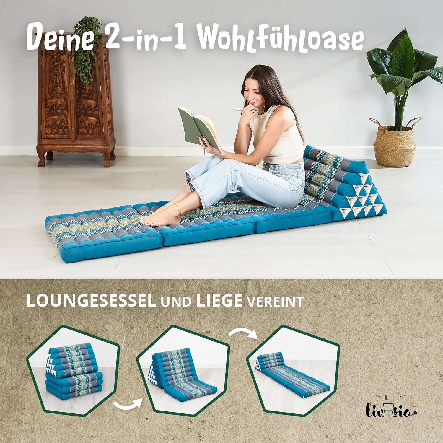 - ENTSPANNUNG MIT KOMFORT: Mit seiner extrahohen Rückenstütze ist das Thaikissen eine wahre Entspannungs-Oase. Schnell lässt sich die Klappmatratze falten, so dass eine gemütliche Liegefläche entsteht. Zusammengeklappt lässt sich das hohe
