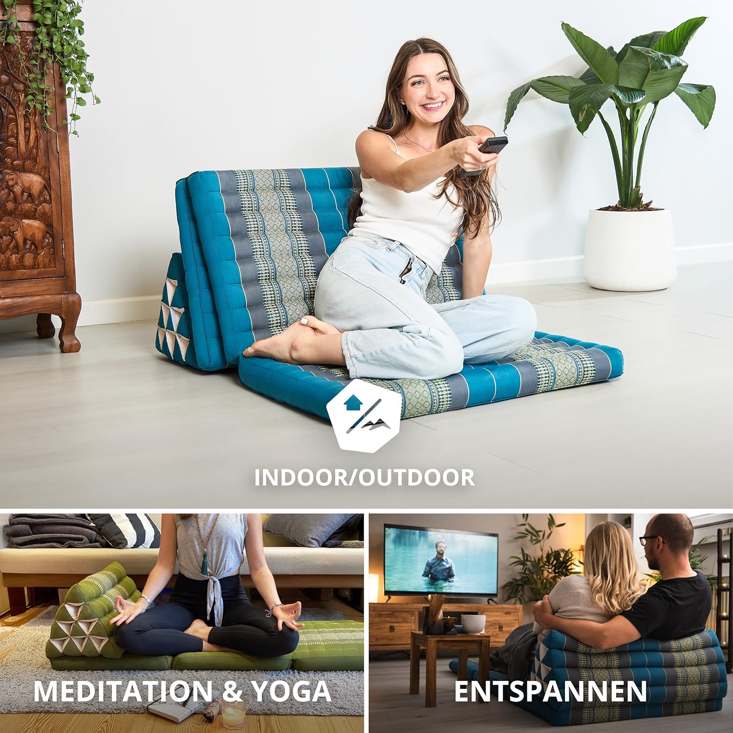 - ENTSPANNUNG MIT KOMFORT: Ob zu zweit asiatische Entspannung geniessen oder alleine mit Komfort relaxen – das breite Thaikissen wird mit nur einem Handgriff zur Wohlfühl-Oase. Zusammengeklappt ist das Dreieckskissen mit Matratze platzsparend und passt