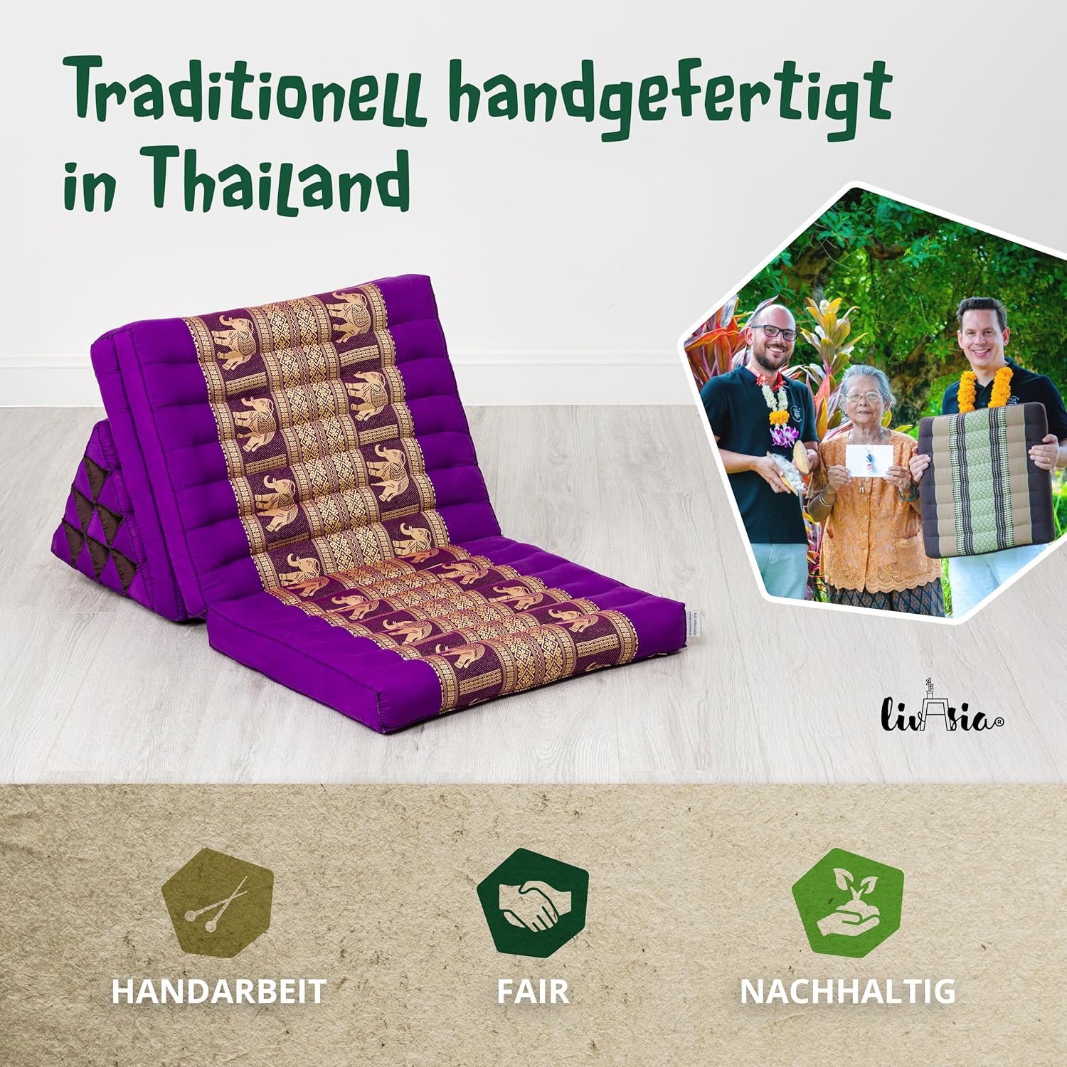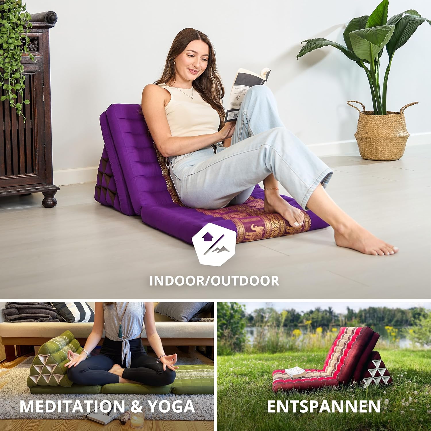 - ENTSPANNUNG IST LUXUS: Mit dem edlen Thaikissen erlebst du einen erholsamen Kurzurlaub in deinen vier Wänden. Das faltbare Kissen mit drei Auflagen wird im Handumdrehen zur Liegewiese – und ebenso schnell ist es platzsparend zusammengeklappt. Die