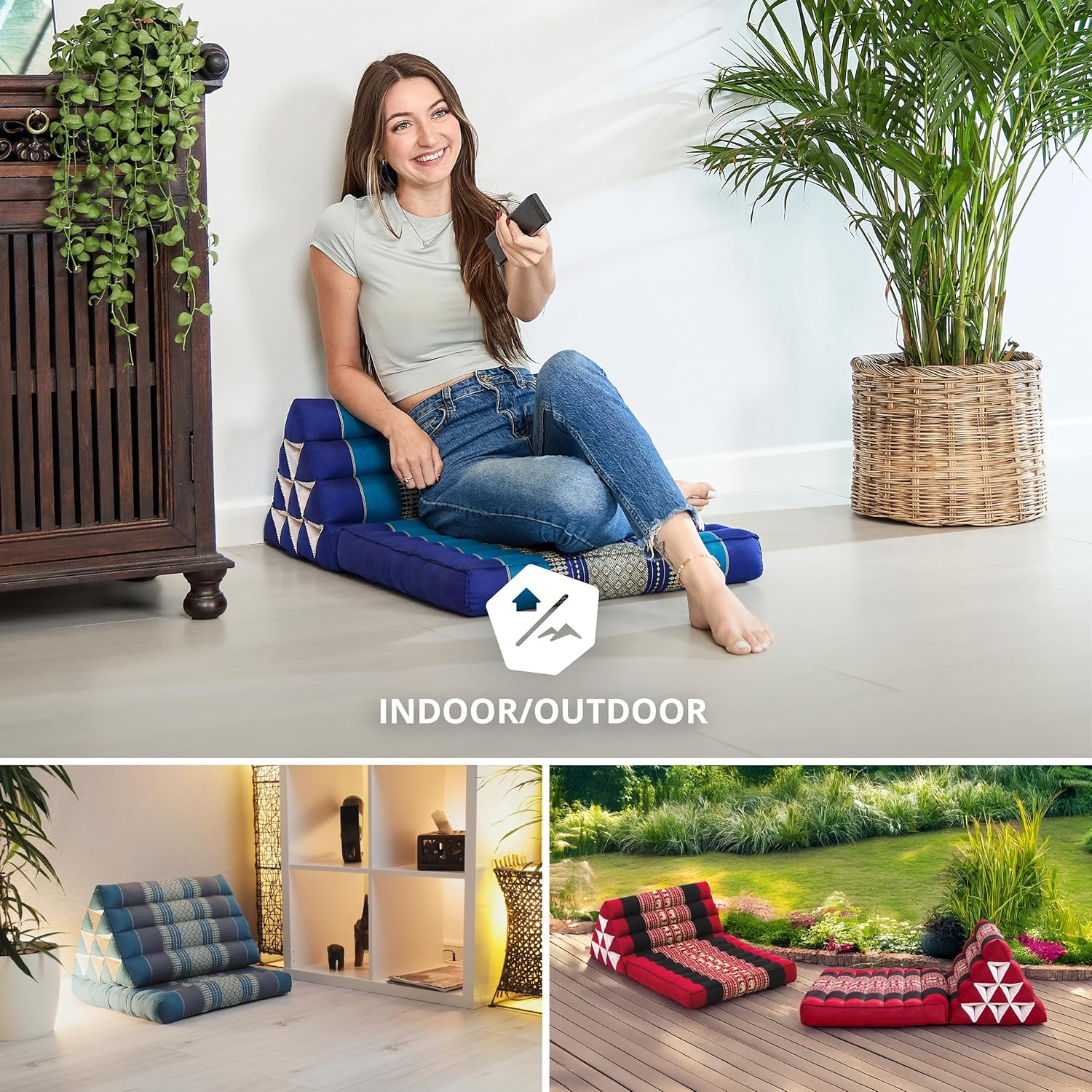 - ZURÜCKLEHNEN UND ENTSPANNEN: Entspannung mit nur einem Handgriff? Das praktische Dreieckskissen mit einem klappbaren Sitzkissen begleitet deinen ausgeglichenen Alltag. Platzsparend bereichert das Thaikissen jeden Wohnraum. Die authentische