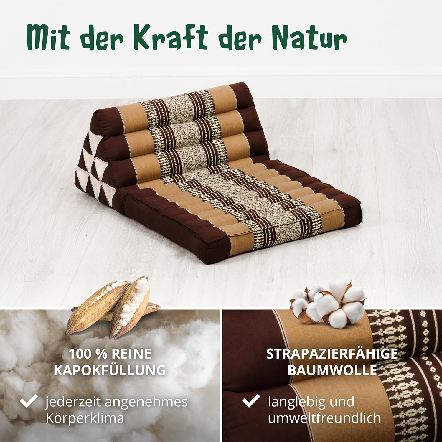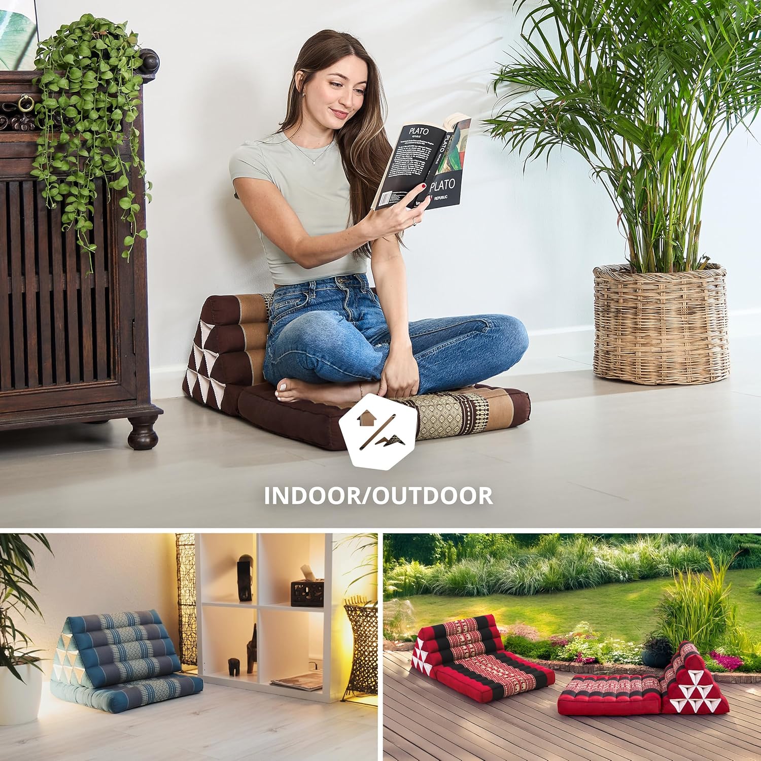 - ZURÜCKLEHNEN UND ENTSPANNEN: Entspannung mit nur einem Handgriff? Das praktische Dreieckskissen mit einem klappbaren Sitzkissen begleitet deinen ausgeglichenen Alltag. Platzsparend bereichert das Thaikissen jeden Wohnraum. Die authentische