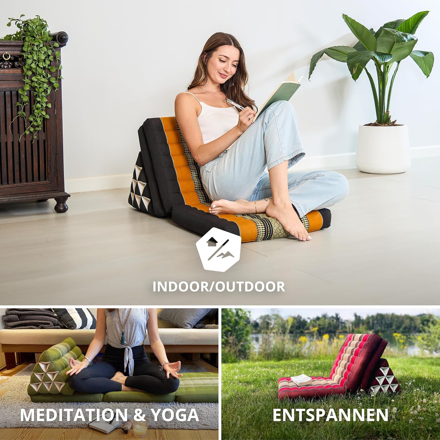 - ENTSPANNUNG IST LUXUS: Die asiatische Wohlfühl-Oase im eigenen Zuhause? Mit dem faltbaren Thaikissen kommt mit einem Handgriff die thailändische Gemütlichkeit in den Wohnraum. Aufklappen und zurücklehnen – ob Yoga-Sessions, Meditation, Fernsehen