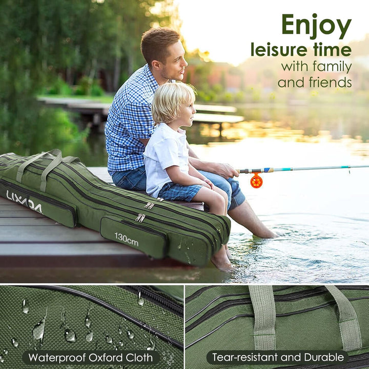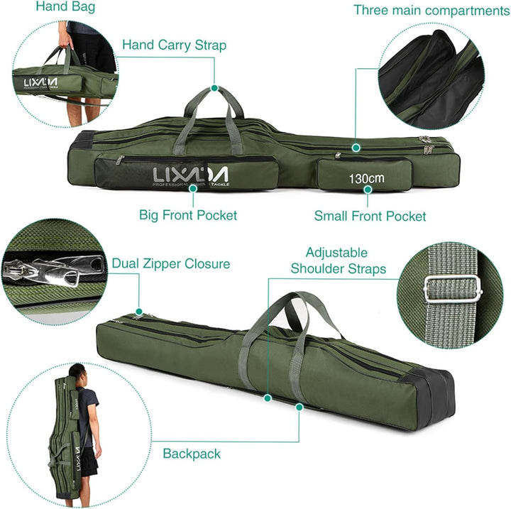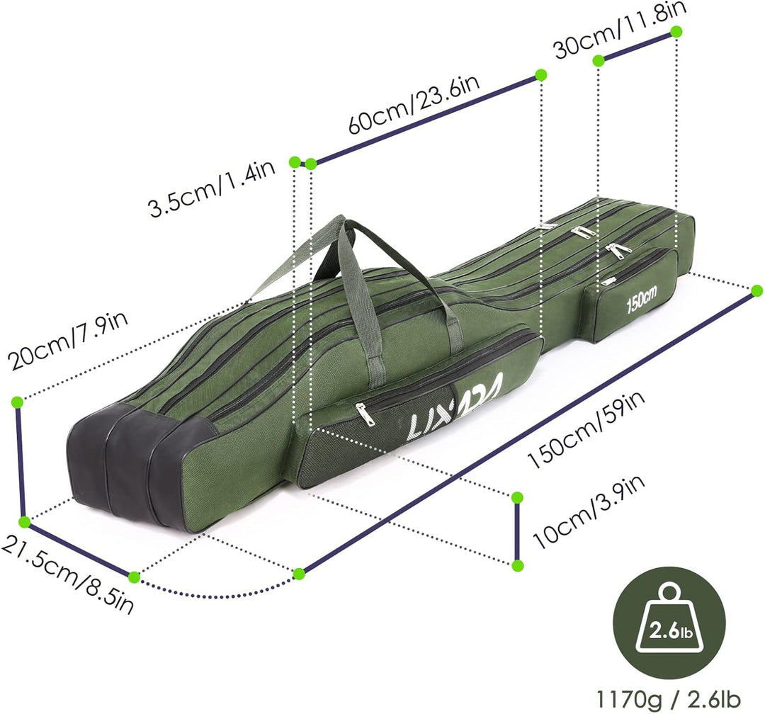 - EINFACHER ZUGRIFF UND ORGANISATION: 3 geräumige Hauptfächer mit grosser Öffnung und zwei Reissverschlüssen für den einfachen Zugriff auf Ihre wichtigsten Fanggeräte wie Angelrute, Angelrolle, Angelschnur, Angelkoffer usw.