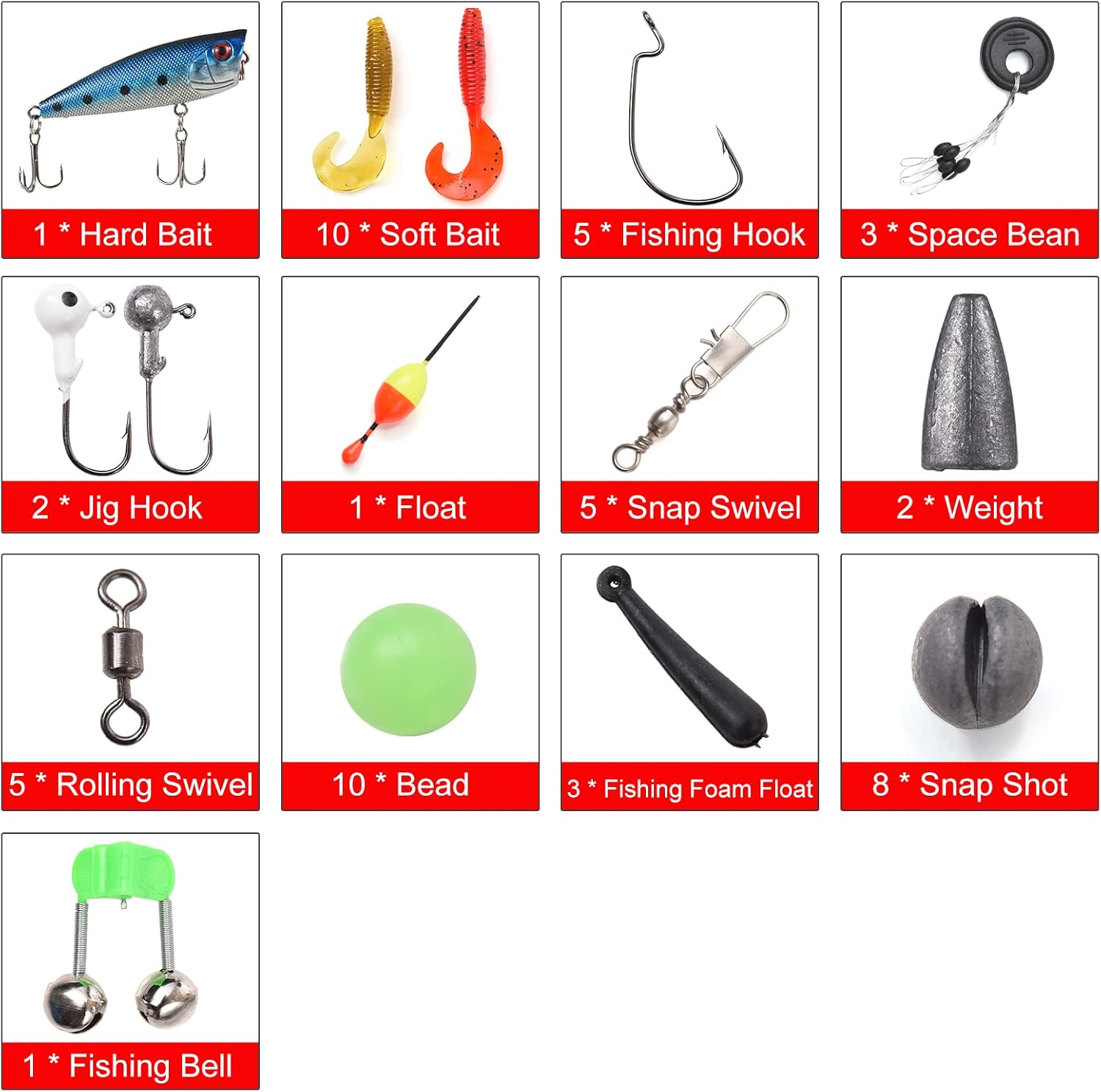- Komplett Angelrute Set Kinder: Mit diesem Kinder-Angelset von Lixada können Kinder stundenlangen Angelspass geniessen. Tackle-Box mit vielen Gittern und transparenten Deckeln hält das gesamte Zubehör in Ordnung: Köder, Wirbel, Haken, Perlen,