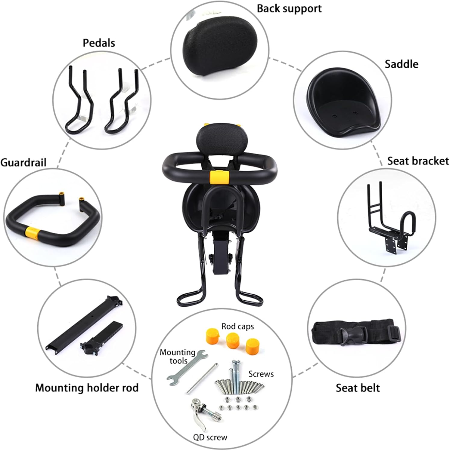 • [Einfach zu installieren]: Der Vordersitz des Fahrrads lässt sich ohne weiteres Werkzeug einfach installieren und entfernen. Geeignet für Klappfahrräder, Stadtfahrräder, Mountainbikes, Rennräder usw.