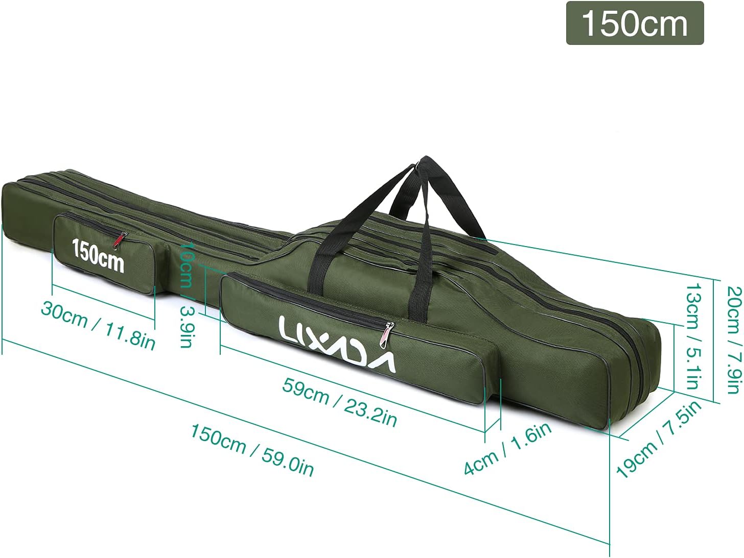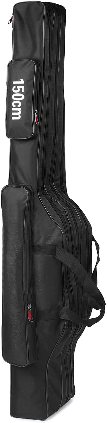 - đăGerĂ€umige KapazitĂ€tă--Mehrere Taschen bieten eine grosse KapazitĂ€t fĂŒr Ihr AngelgerĂ€t.Die lange Seitenaussentasche dieser Angelrutentasche ist ideal um AngelausrĂŒstung wie Erdspiesse, Rutenhalter, Kescher und Co. zu verstauen.Die Tasche