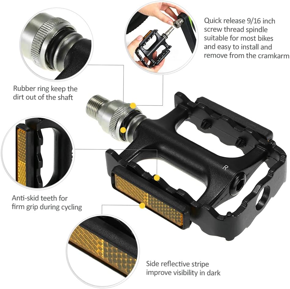 - 【Durchdachtes Design】: Die Fahrradpedale bestehen aus der Aluminiumlegierung, auf jeder Seite befinden sich reflektierende Streifen, um die Sicherheit bei Nachtfahrten zu verbessern.