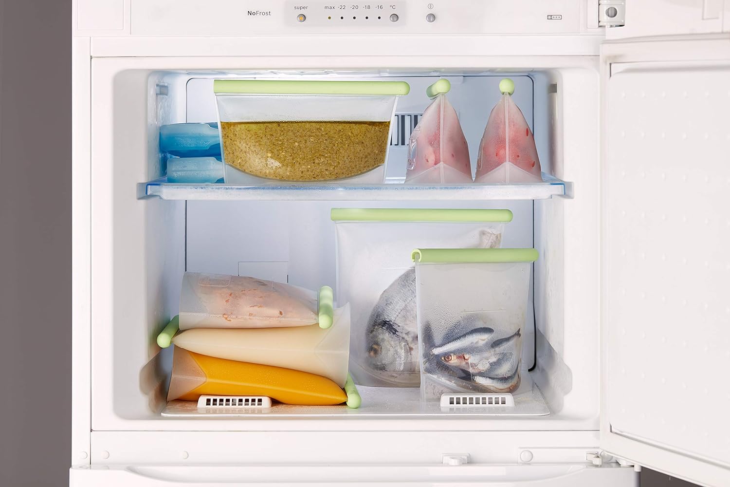 - Diese Beutel können vertikal und horizontal aufbewahrt werden, um Ordnung und Hygiene im Kühlschrank zu bewahren; zudem wird Platz gespart