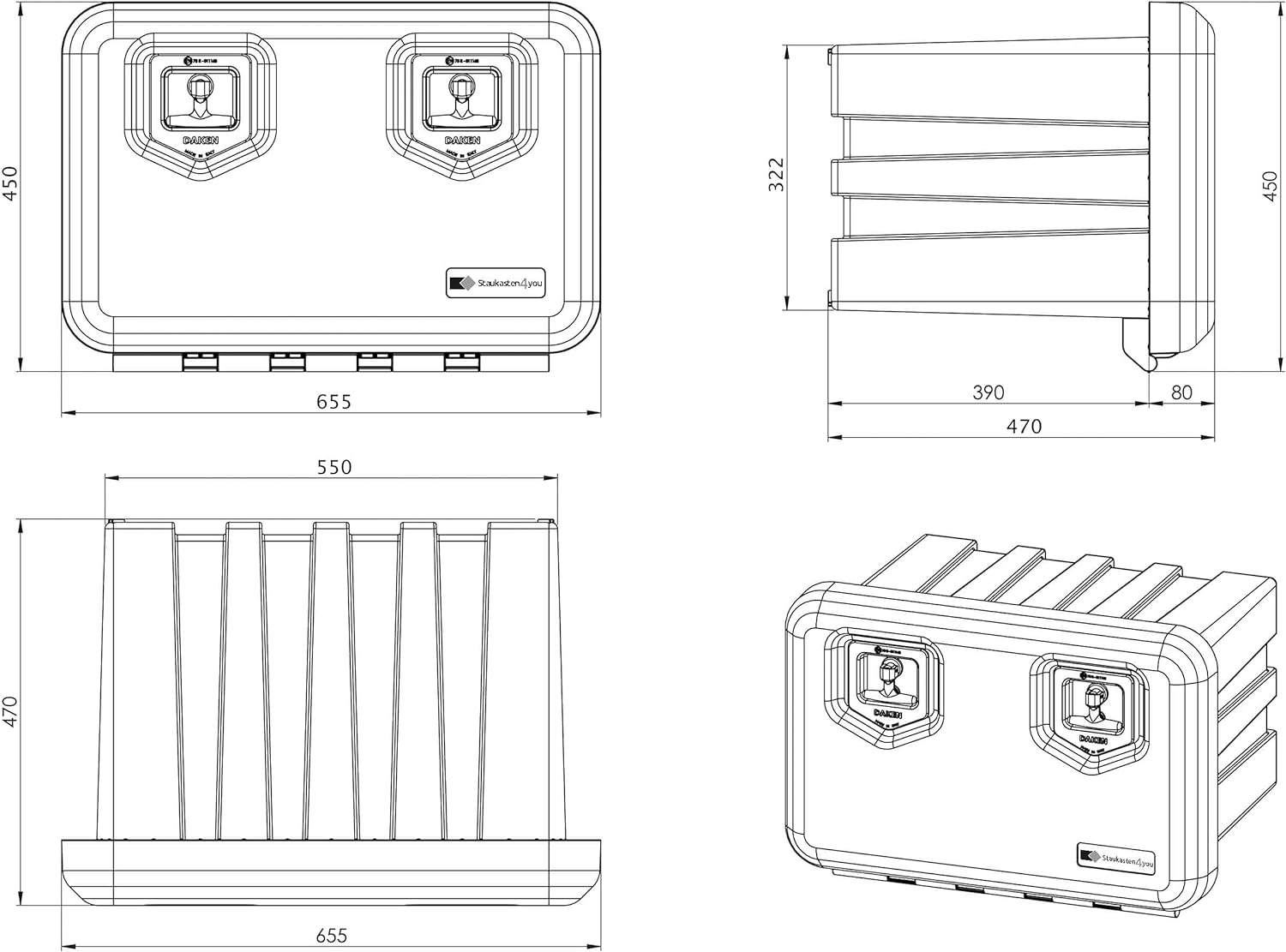 - Staukasten Staubox Werkzeugkasten Unterflurkasten Daken ARKA 600 B 655 x H 450 x T 470 mm aus Kunststoff LKW Expeditionsfahrzeug Wohnmobil Anhänger ohne Befestigungsmaterial