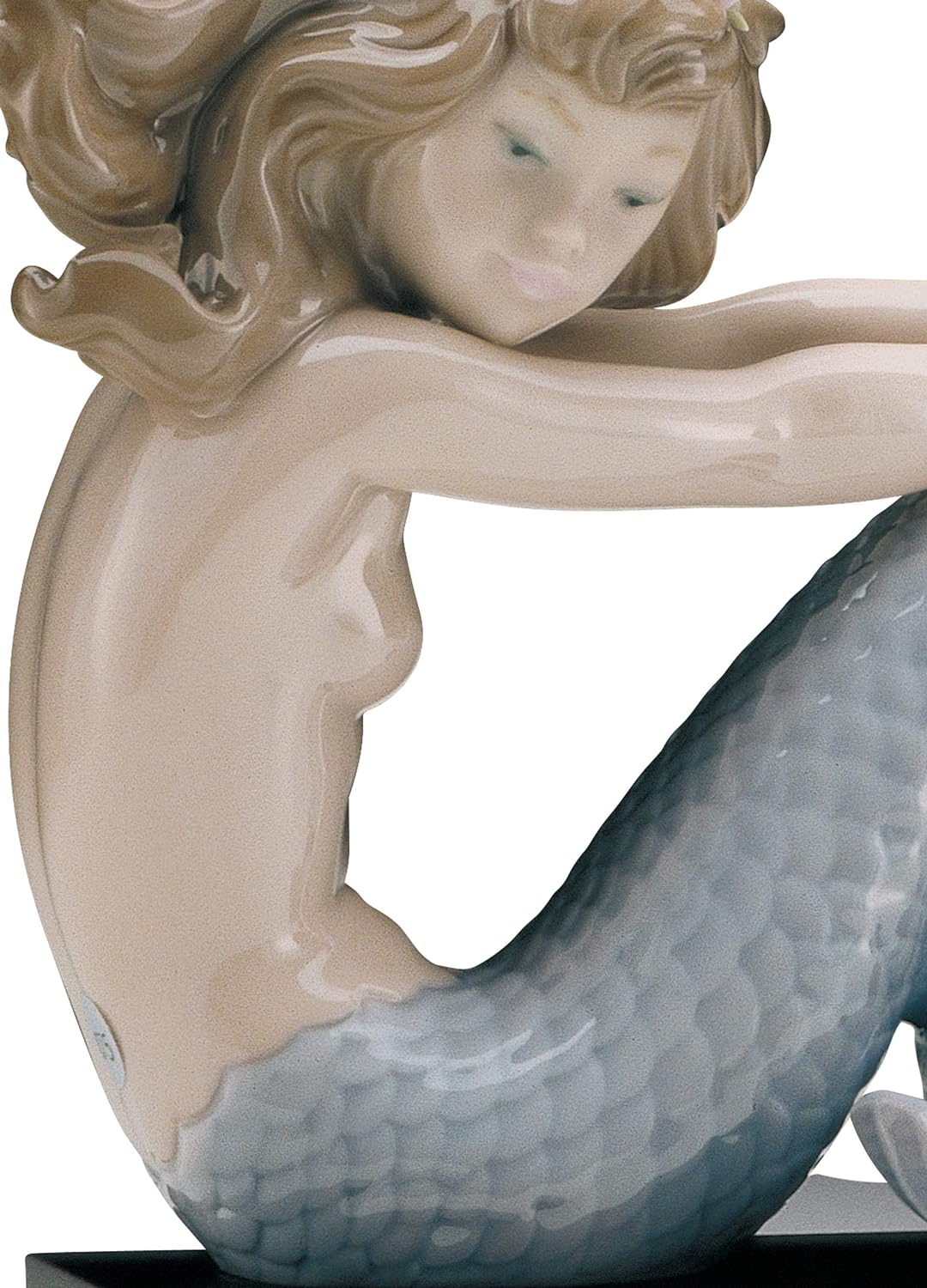 LLADRÓ Figur Kleine Meerjungfrau. Die Arme Auf Den Kn. Meerjungfrau. Porzellan.