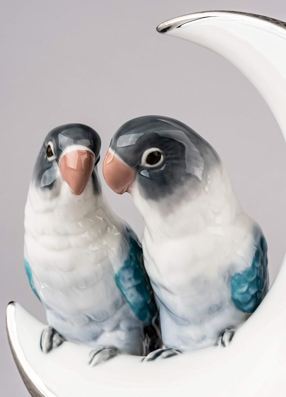 LLADRÓ Vogel-Figur Flieg Mich Zum Mond. Silber. Papageien. Porzellan.