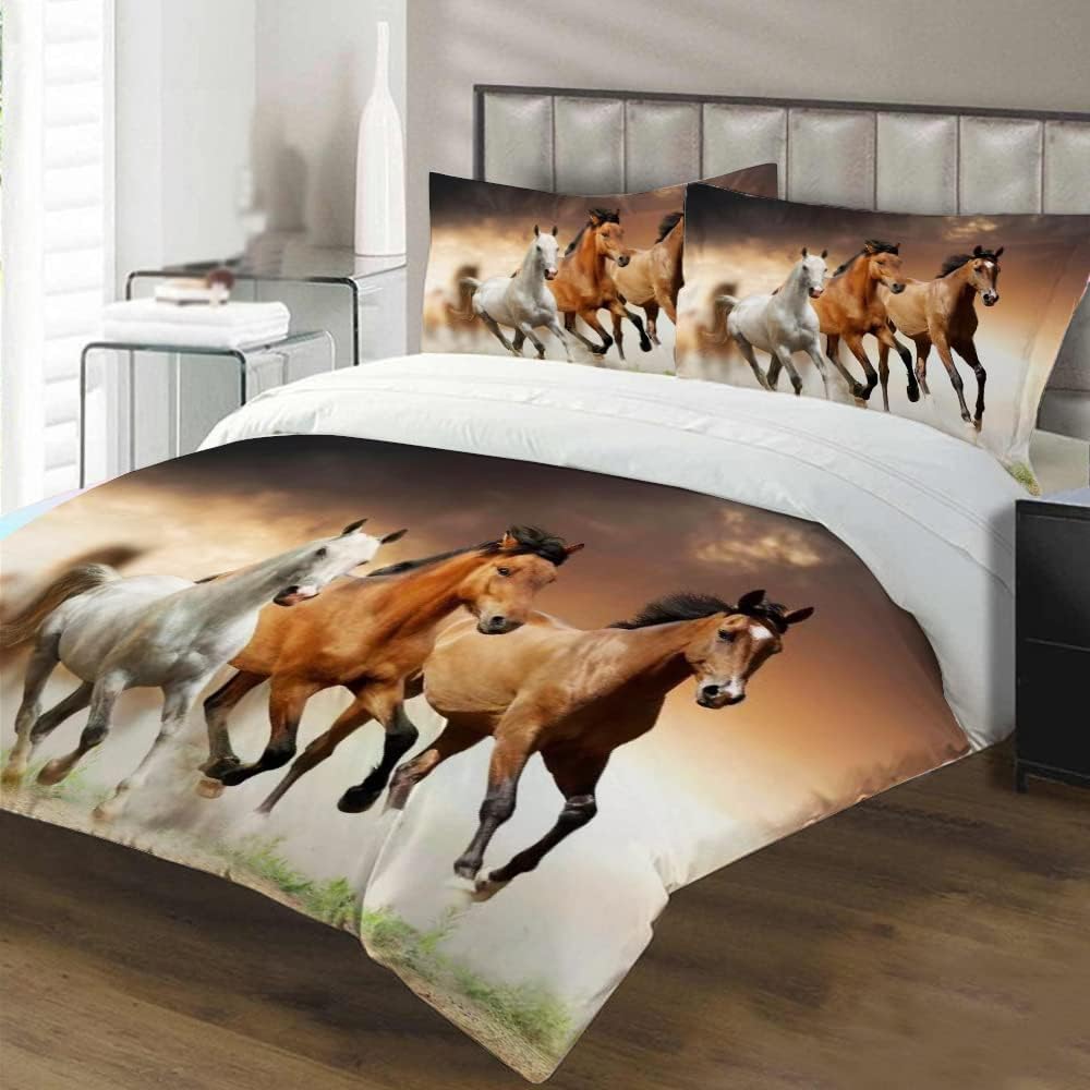 • 🐴【3D Pferde Bettwäsche Set】 Bettwäsche Pferd Schön gestaltete Muster,Stoffe weich,Nähtechniken hochauflösender Digitaldruck.Beeindruckende 3D-Effekte,dekorieren Sie Ihr Zimmer sehr gut.Bringen Sie einen neuen Look.