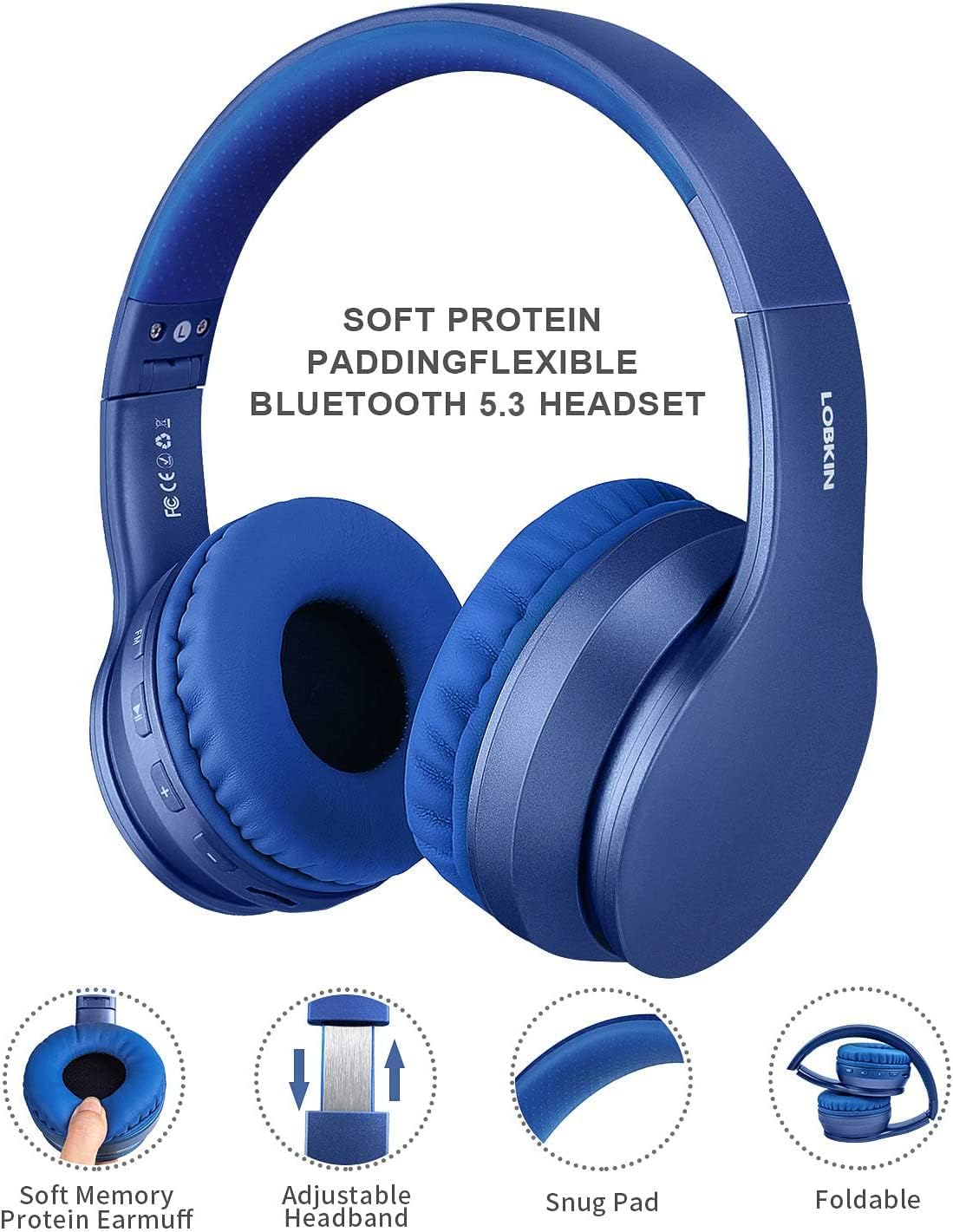 LOBKIN Kabellose Bluetooth-Kopfhörer, Over-Ear-Stereo, faltbar, Hi-Fi-Stereo-Headset mit Mikrofon, u