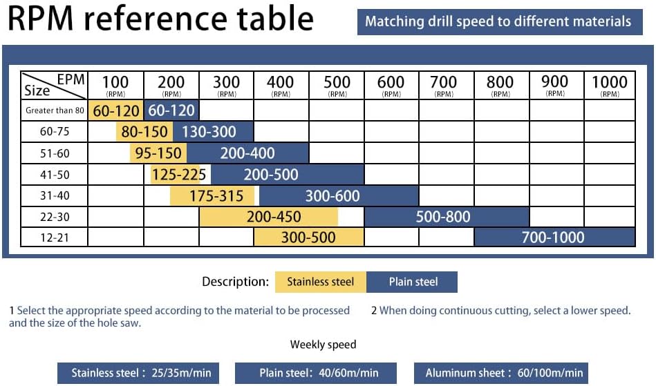 - ⭐Hinweis: Für verschiedene Materialien, wie z. B. rostfreien Stahl und herkömmliche Bleche, sind die entsprechenden Bohr- und Vorschubgeschwindigkeiten unterschiedlich, siehe Details. Zum Bohren von rostfreiem Stahl ist eine elektrische Bohrmaschine