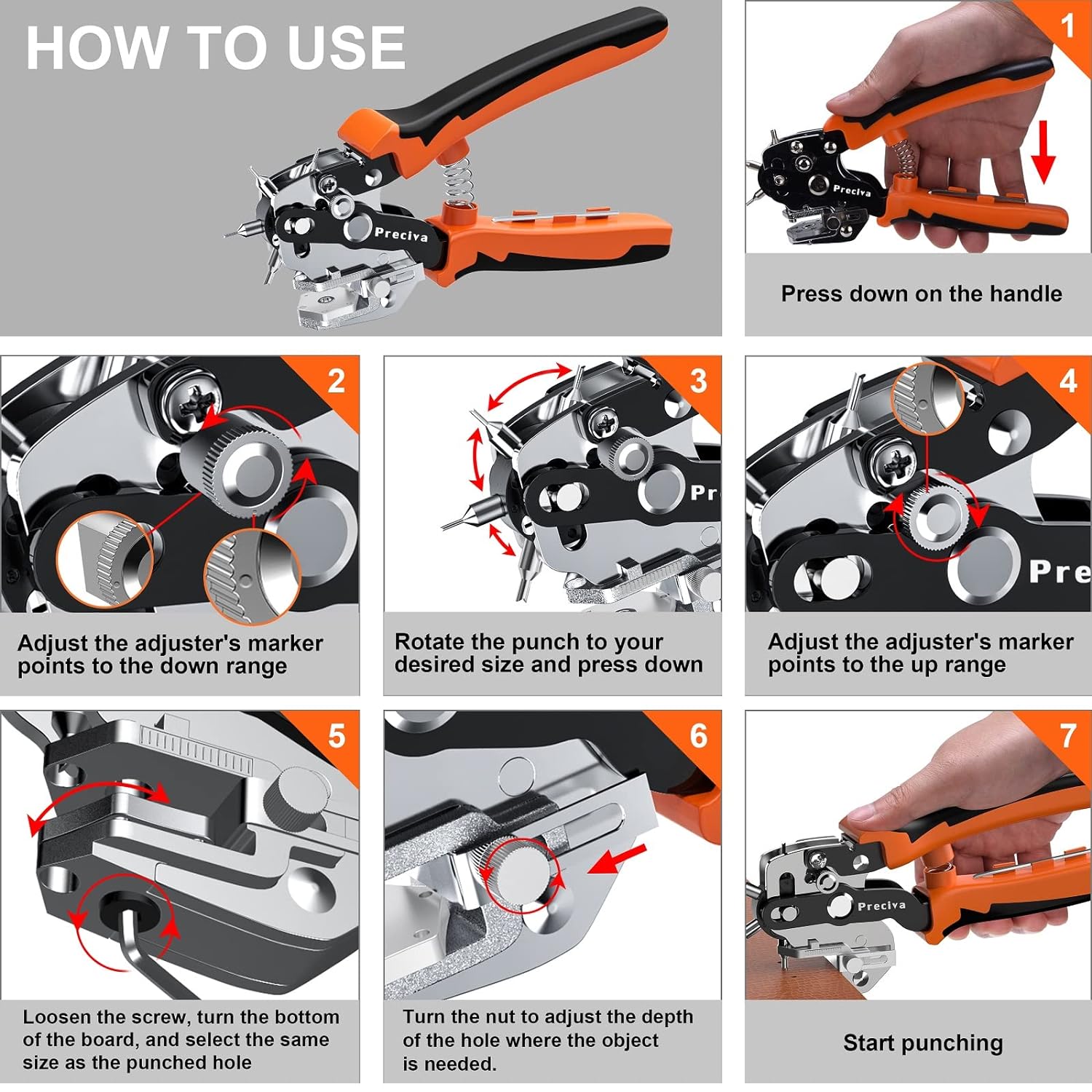 - ⚙️ Breite Anwendung: Dieser Multifunktions-Lochstanzer ermöglicht bessere Stabilität und kontrollierbarer beim Stanzen von Corium, Kunstleder, Stoffen, Papier, alle Arten von Kunststoffen und vielen anderen Materialien.