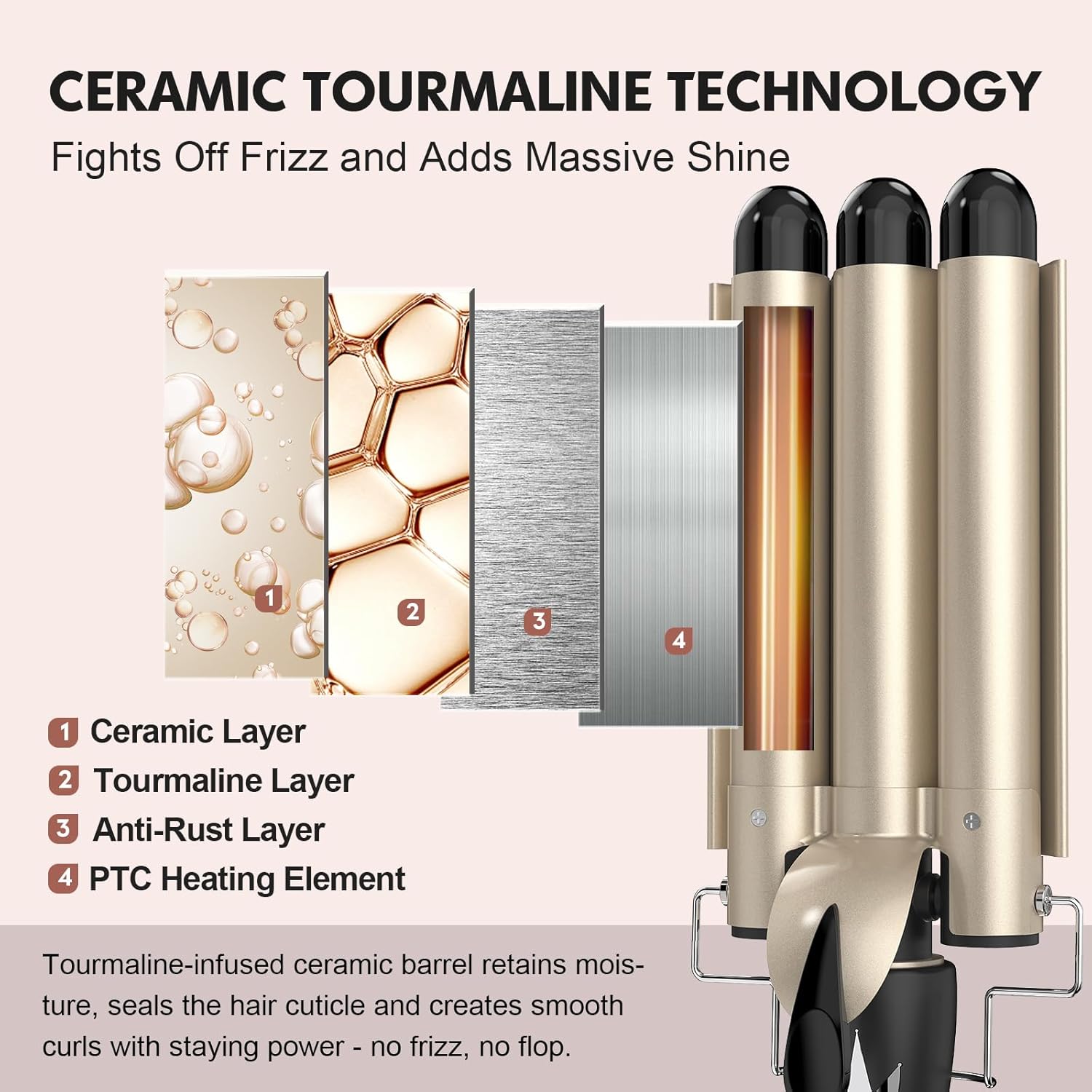 - 【Ein messy Beach Waves Look - Ein Traum】 Mit dem Haar Lockenstab kannst du optimal einen lässigen Beach Look zaubern oder einen wilden Lockenkopf kreieren. Die wellen sind toll, natürlich und über viele Stunden halten. Super Volumen und die Haare