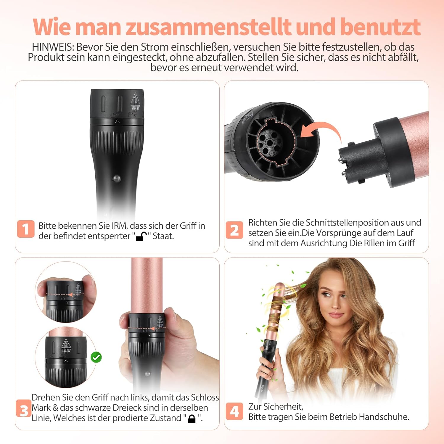- IDEALES GESCHENK: Für natürlicher aussehende Locken empfehlen wir, in jede Locke nur eine kleine Haarpartie zu schneiden. Lassen Sie das Haar nach dem Erhitzen des Lockenstabs 2–9 Sekunden lang locken. Lassen Sie Haare nicht länger als 15 Sekunden
