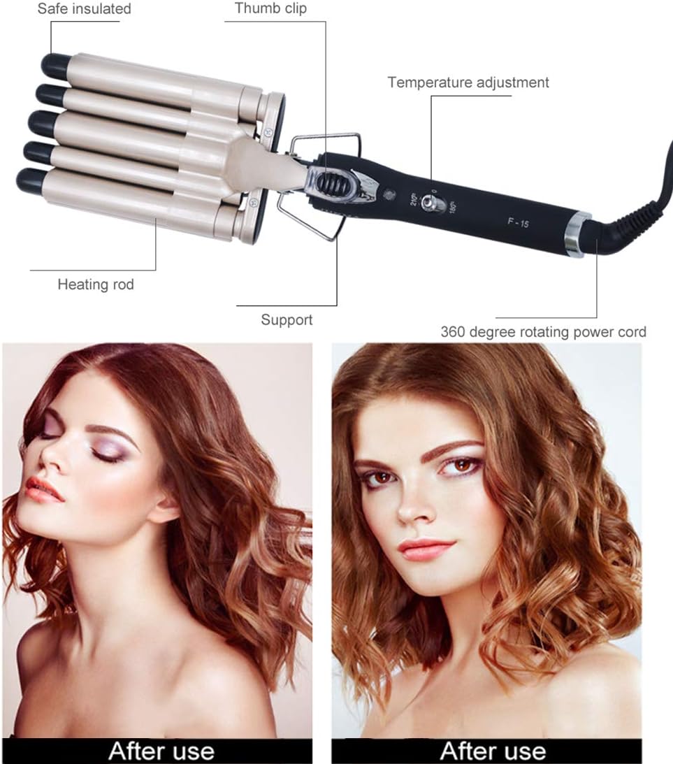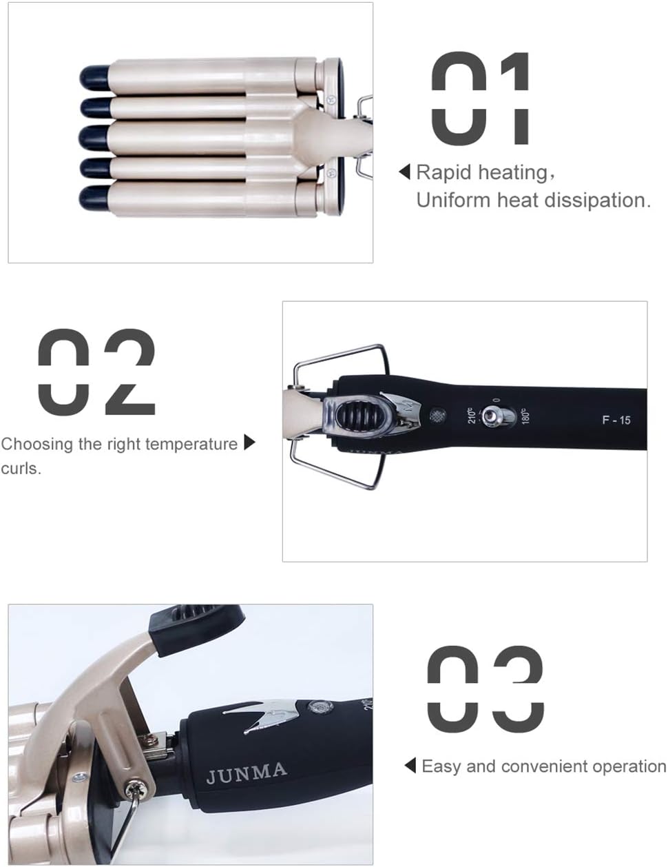 - 【💕 5 Barrel Lockenstab 💕 】5 Barrel Curling Wand funktioniert bei allen Haartypen, egal ob Sie kurze oder lange Locken haben; Dick oder dünn. Der Lockenstab verwendet die importierte Keramikglasur-Beschichtungstechnologie. Erhitzte Keramik