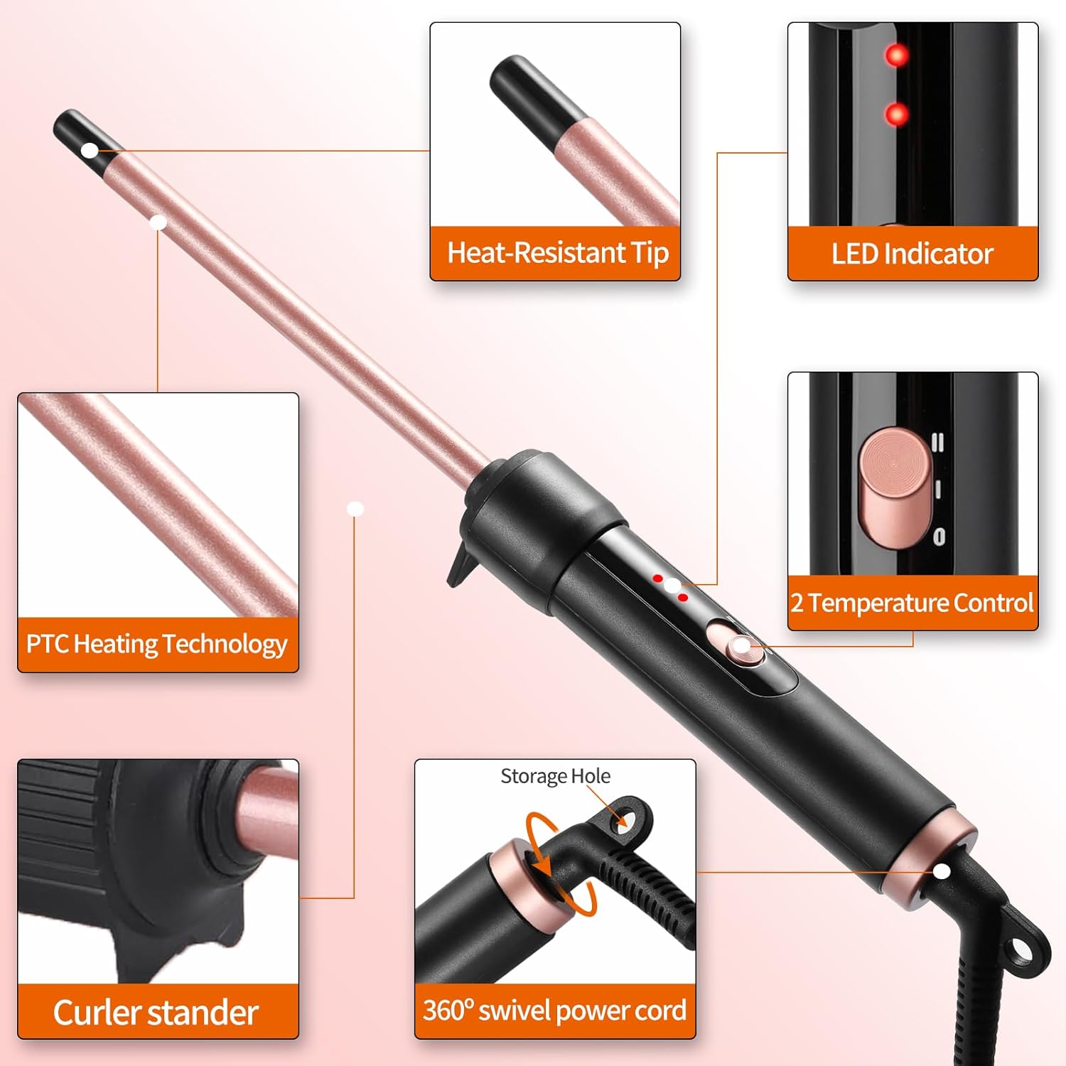 Lockenstab Kleine Locken, Haglater Mini Lockenstäbe 9mm, Dünner Lockenstab Dünn enge Locken, 2 Tempe