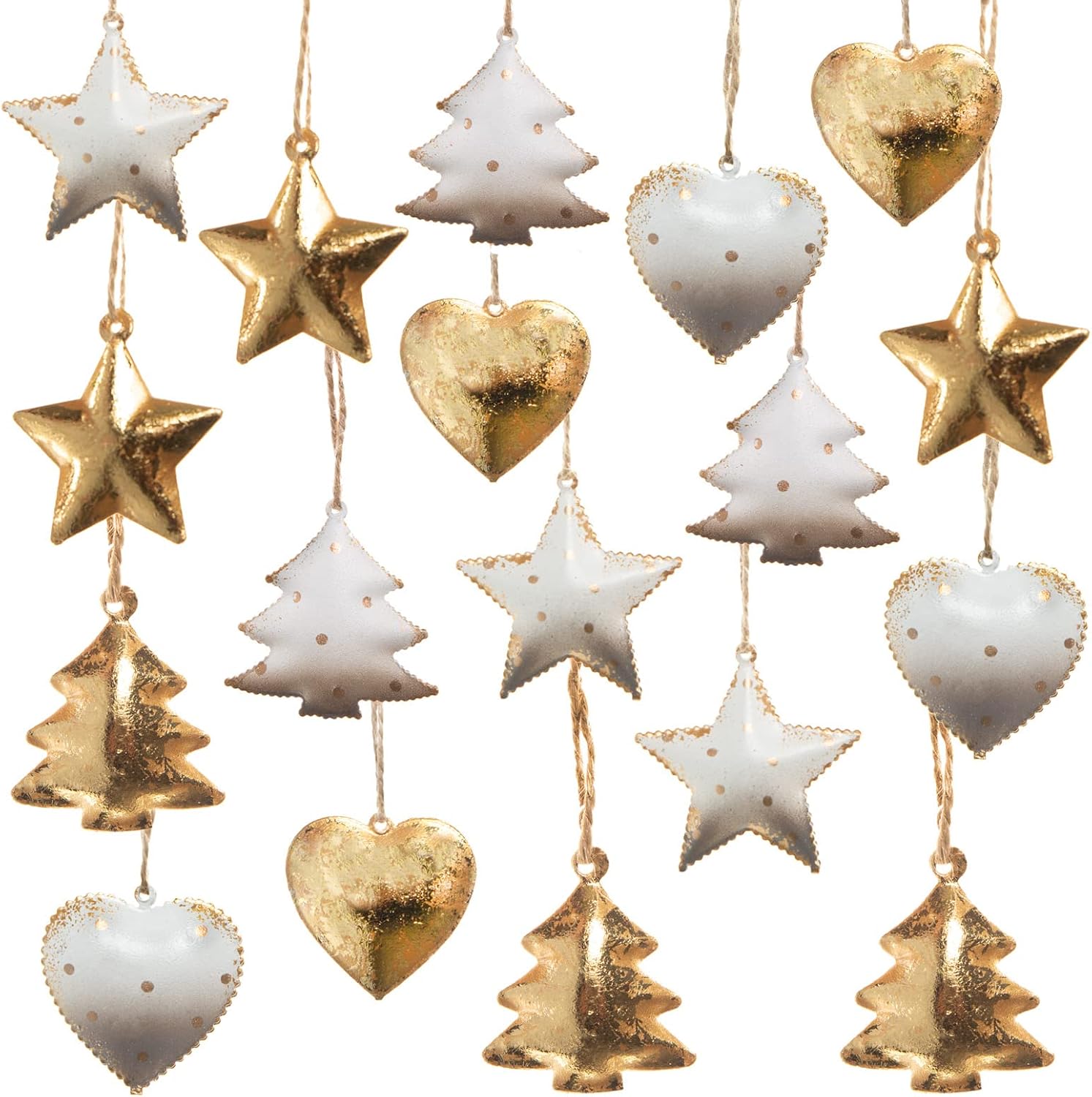 - Zauberhafte Weihnachtsanhänger in Form von Sternen, Bäumen und Herzen mit Schnur zum Aufhängen. Diese weihnachtlichen Geschenkanhänger sind ein besonderer Christbaumschmuck. Farbe: gold, weiss, grau.