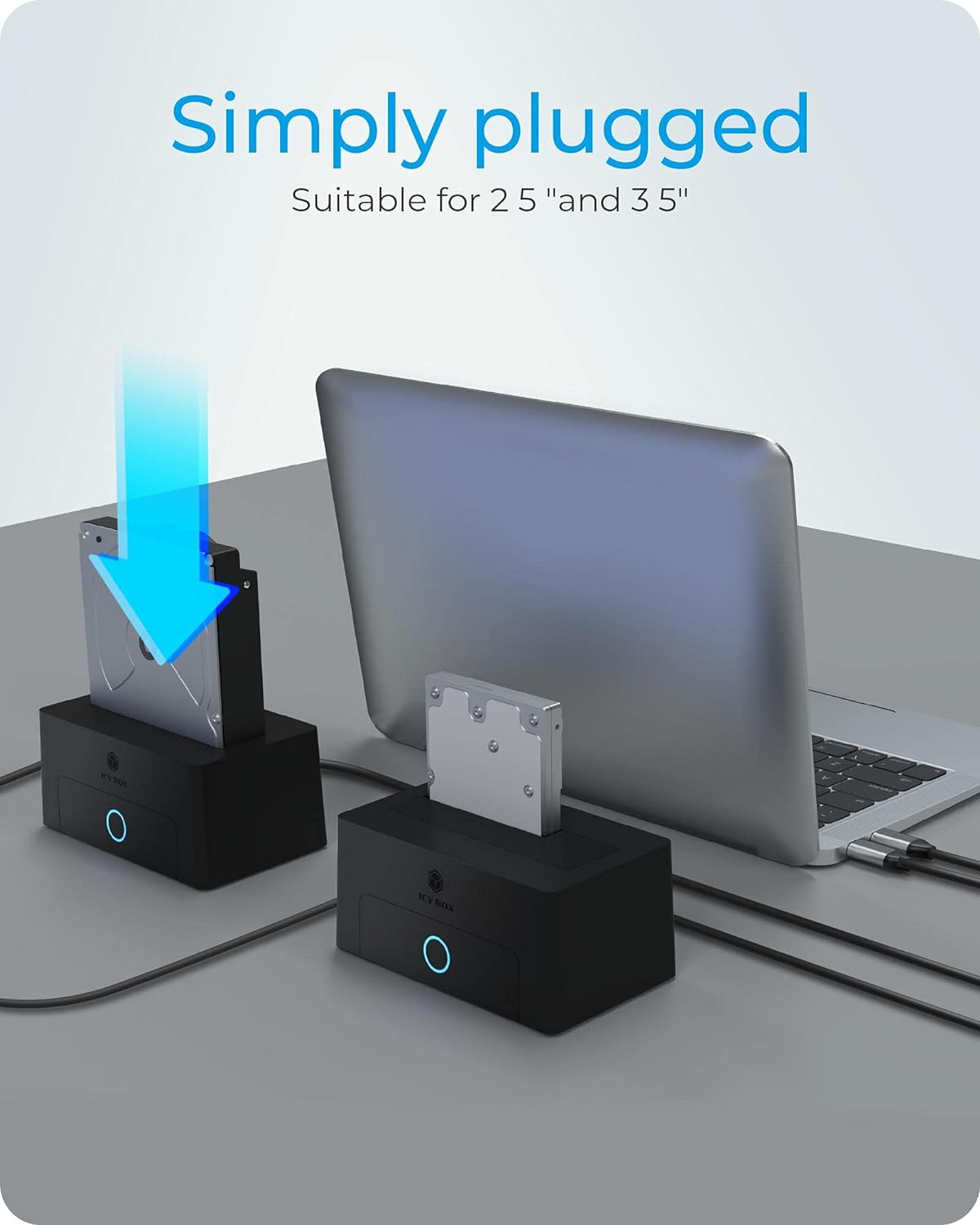 - Produkt 2: PLUG & PLAY: Die DockingStation unterstütz MacOS und Windows. Einfach anschliessen, Festplatte einstecken und schon können Sie auf Ihre Daten zugreifen oder diese speichern.