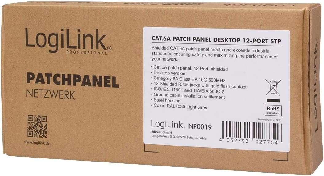 - RJ45 Verteilerfeld/Patchpanel Kategorie 6A 10G Klasse EA 500 MHz