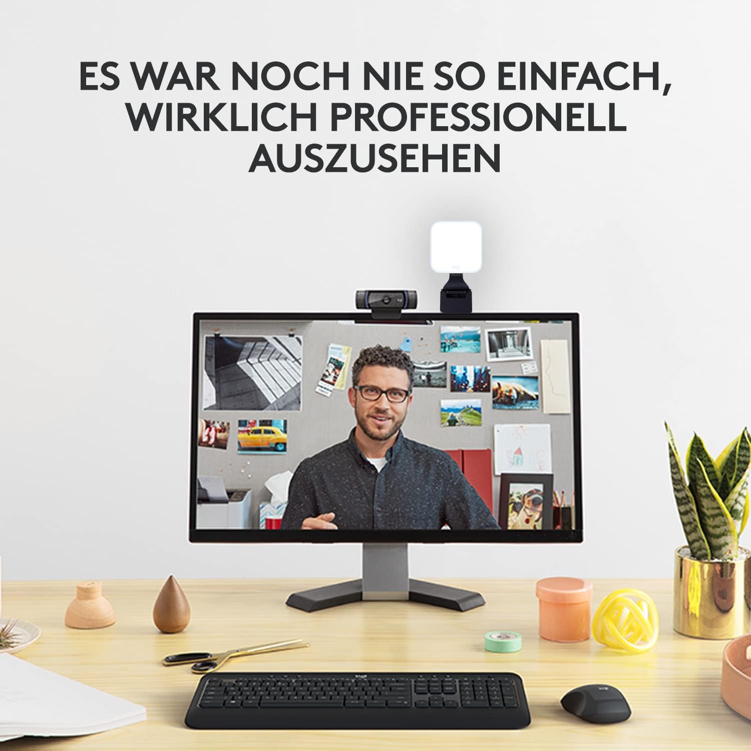 - Die Litra Glow Lampe, die ein kräftiges, tageslichtangeglichenes LED-Licht abgibt, sorgt für eine optimale Ausleuchtung am Schreibtisch und präsentiert Sie anderen stets optimal in Full HD