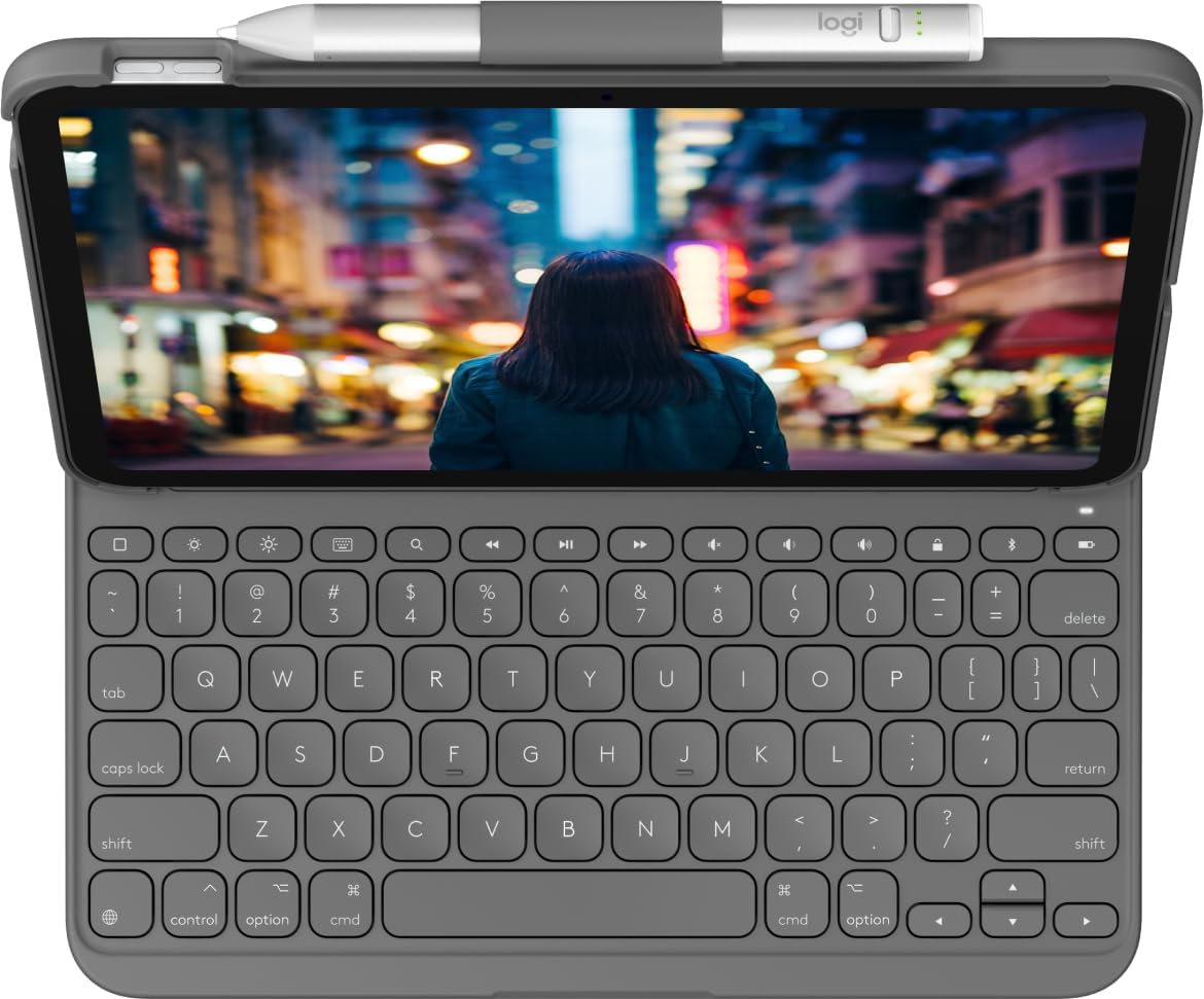 - [Tastatur in Standardgrösse mit Zeile mit iPadOS-Sondertasten] Tippen Sie bequem auf grossen, grosszügig angeordneten Tasten, die sich über die ganze Tastatur erstrecken. Mit iPadOS-Sondertasten für den schnellen Zugriff auf Lautstärkeregelung,