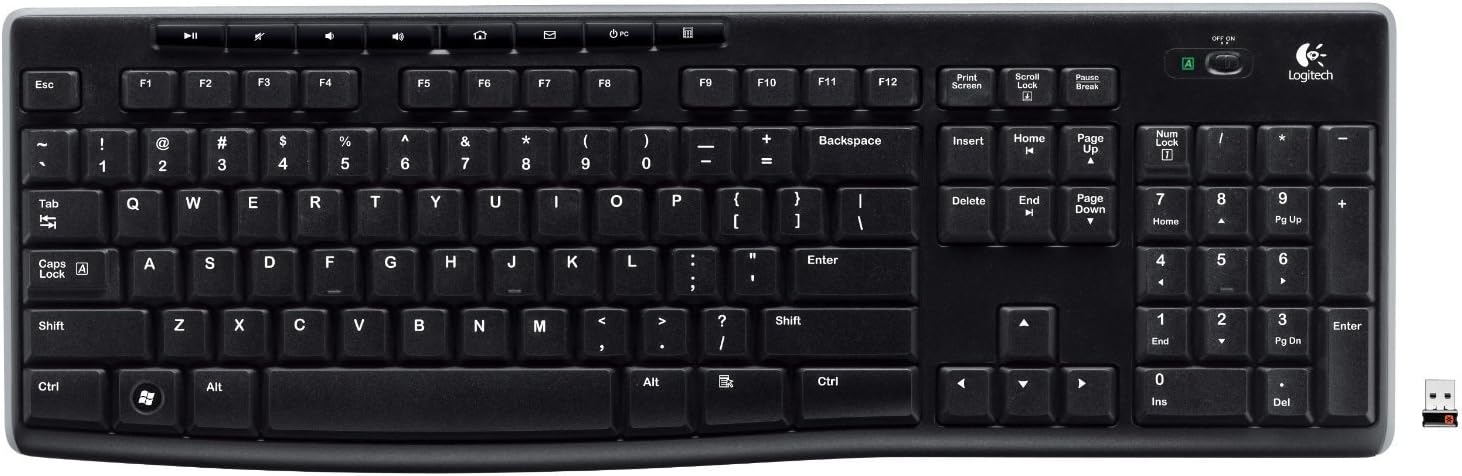 Logitech K270 Kabellose Tastatur, 2.4 GHz Verbindung via Unifying USB-Empfänger, 8 Multimedia- und S
