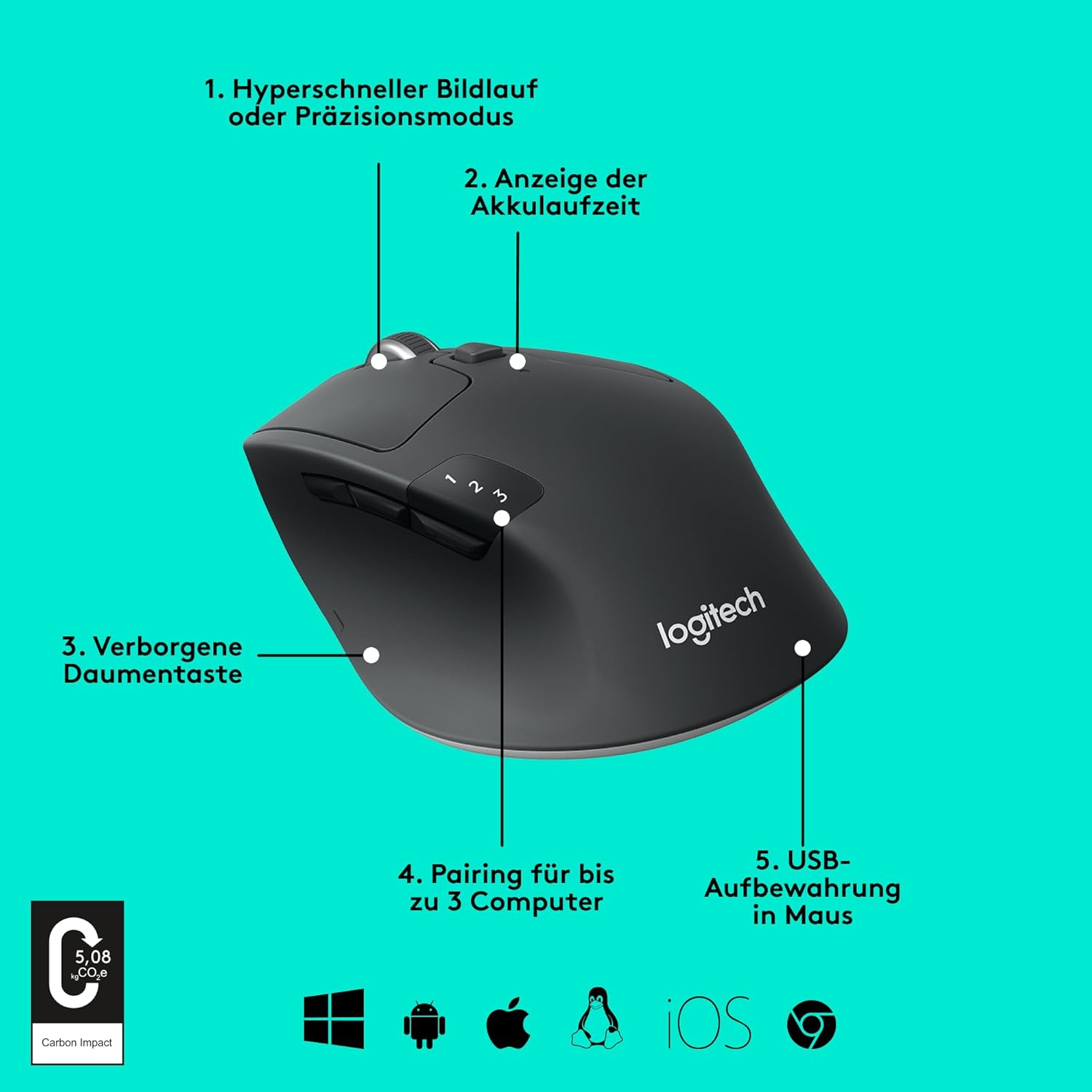 - Langlebig und vielseitig: Die M720 Maus bietet eine 24-monatige Batterielaufzeit (1) und ist mit Computern, Laptops und Tablets, Windows, macOS, Chrome OS, Linux und iPadOS kompatibel